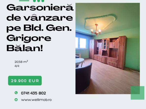Garsonieră de vânzare pe bulevardul Grigore Bălan!
