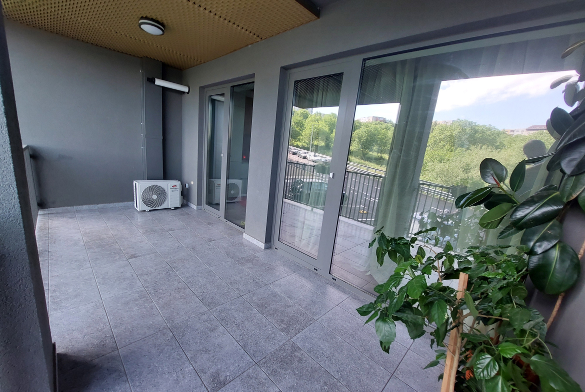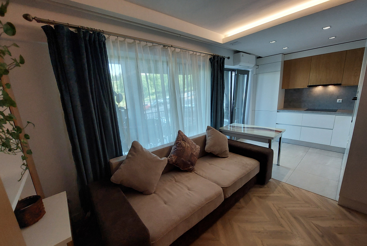 De vanzare apartament cu 2 camere, semidecomandat, cu hol, living, cu bucatarie open space, dormitor și baie, in suprafata utila totala de 59.6 mp + 2 balcoane in suprafata totala de 17.2 mp. Este mobilat si utilat cu electrocasnice.