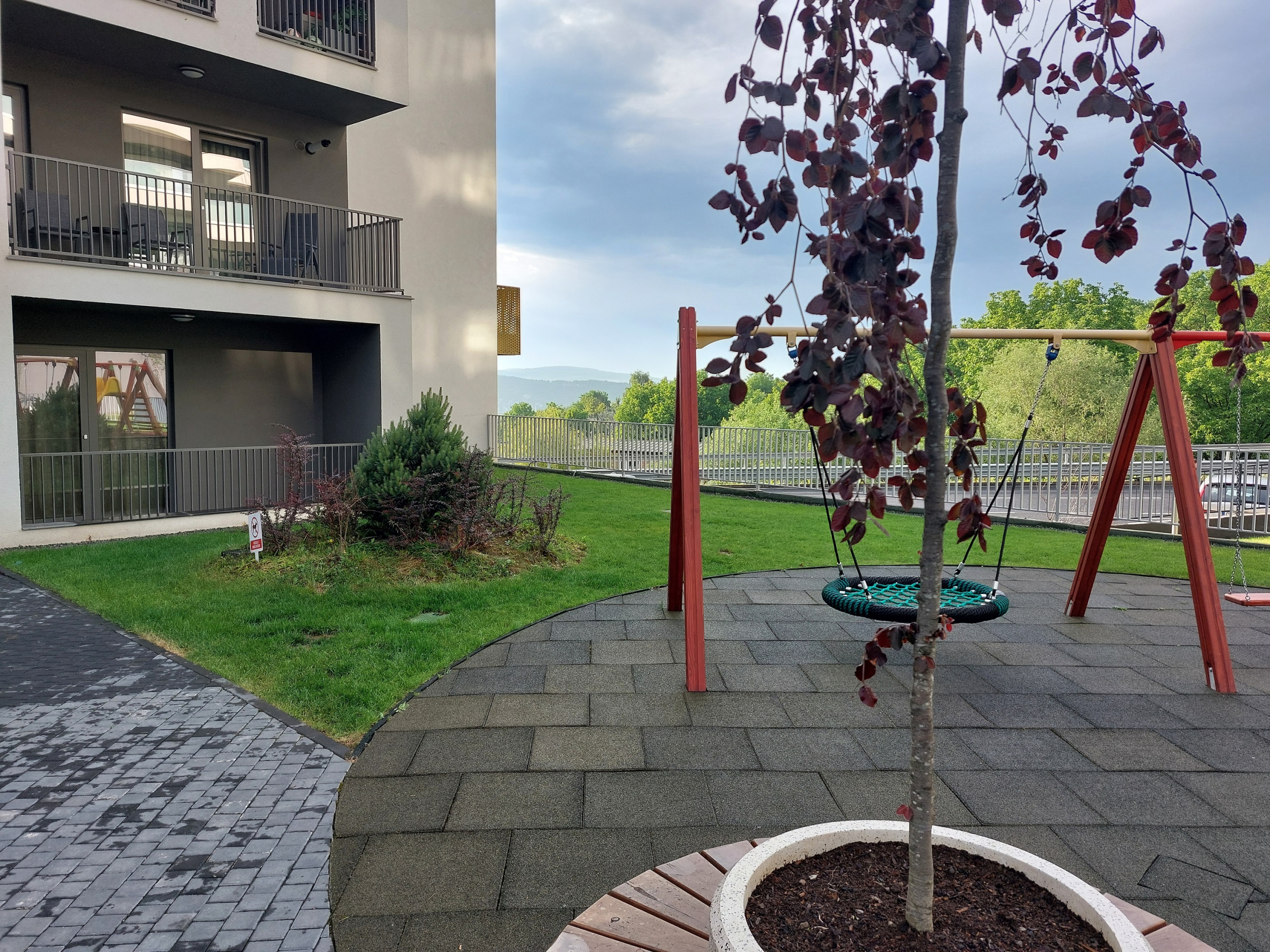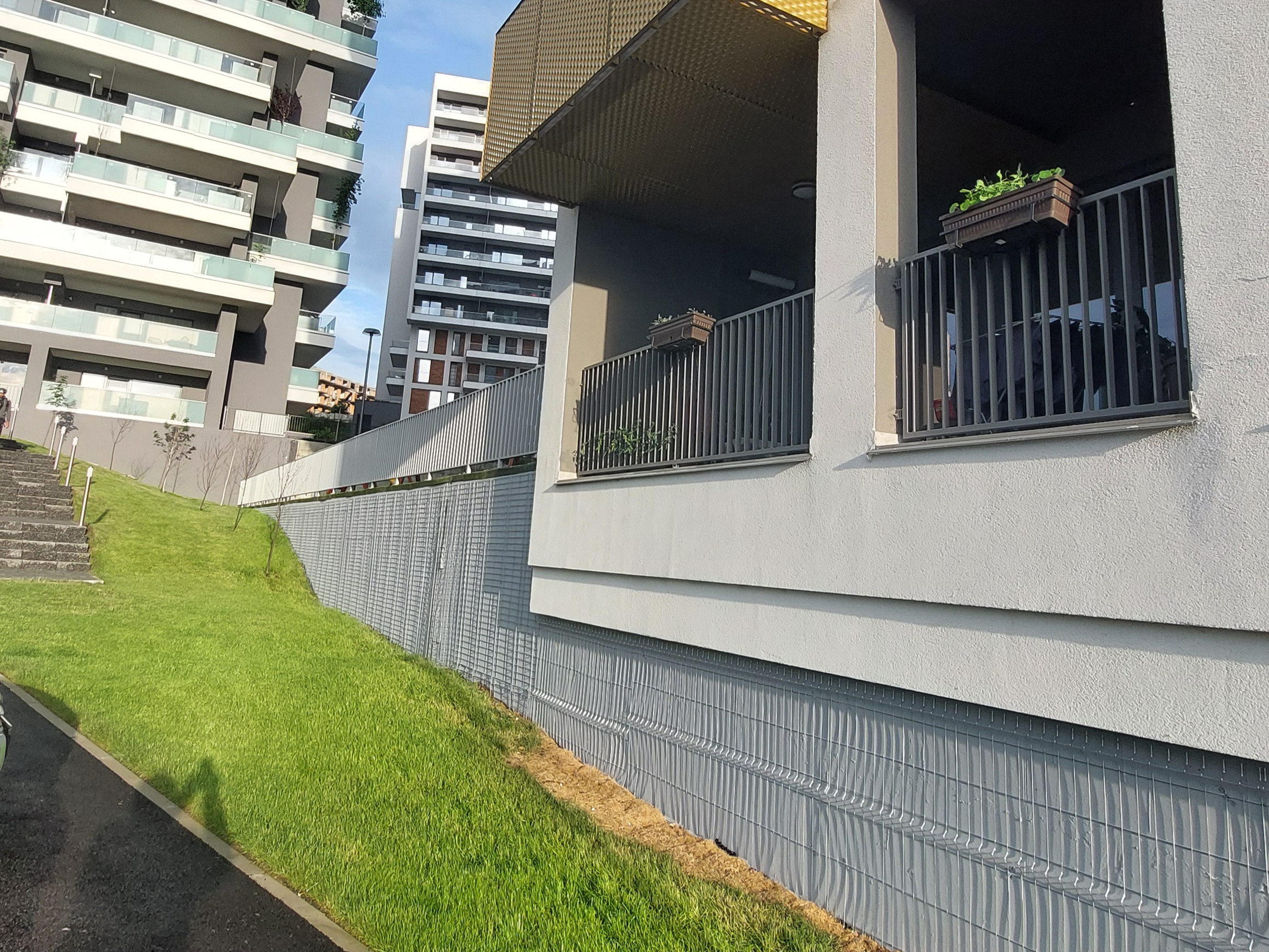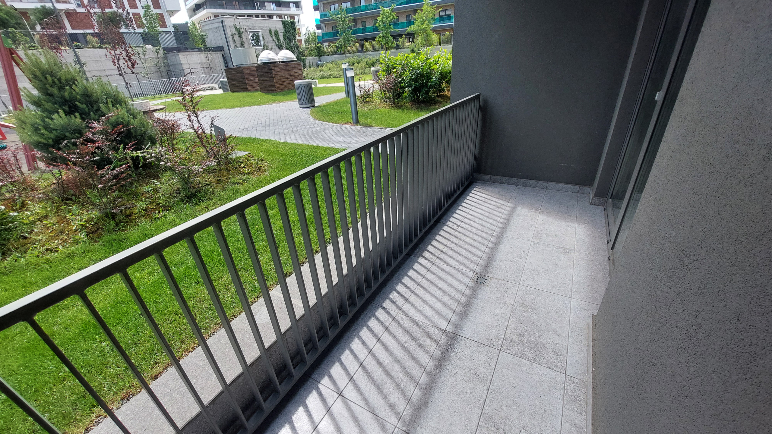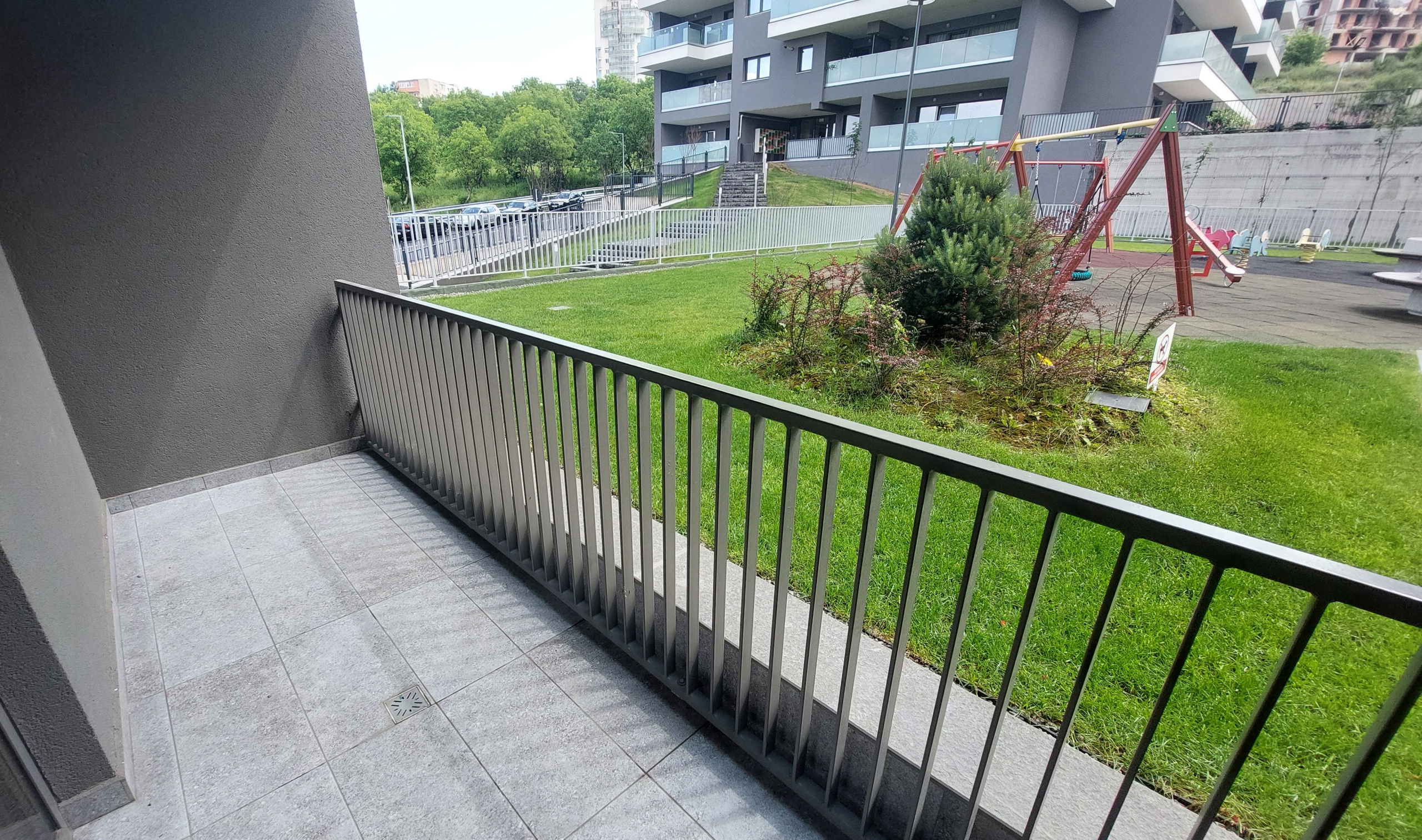 Apartamentul este situat in blocul Scala de pe str. Frunzisului la parter. 1 balcon, cel mai mare, de 11.73 mp, ce ii corespunde livingului si bucatariei, este situat la parterul inalt, iar cel de-al doilea de la dormitor, este cu vedere direct in zona verde-parculet.