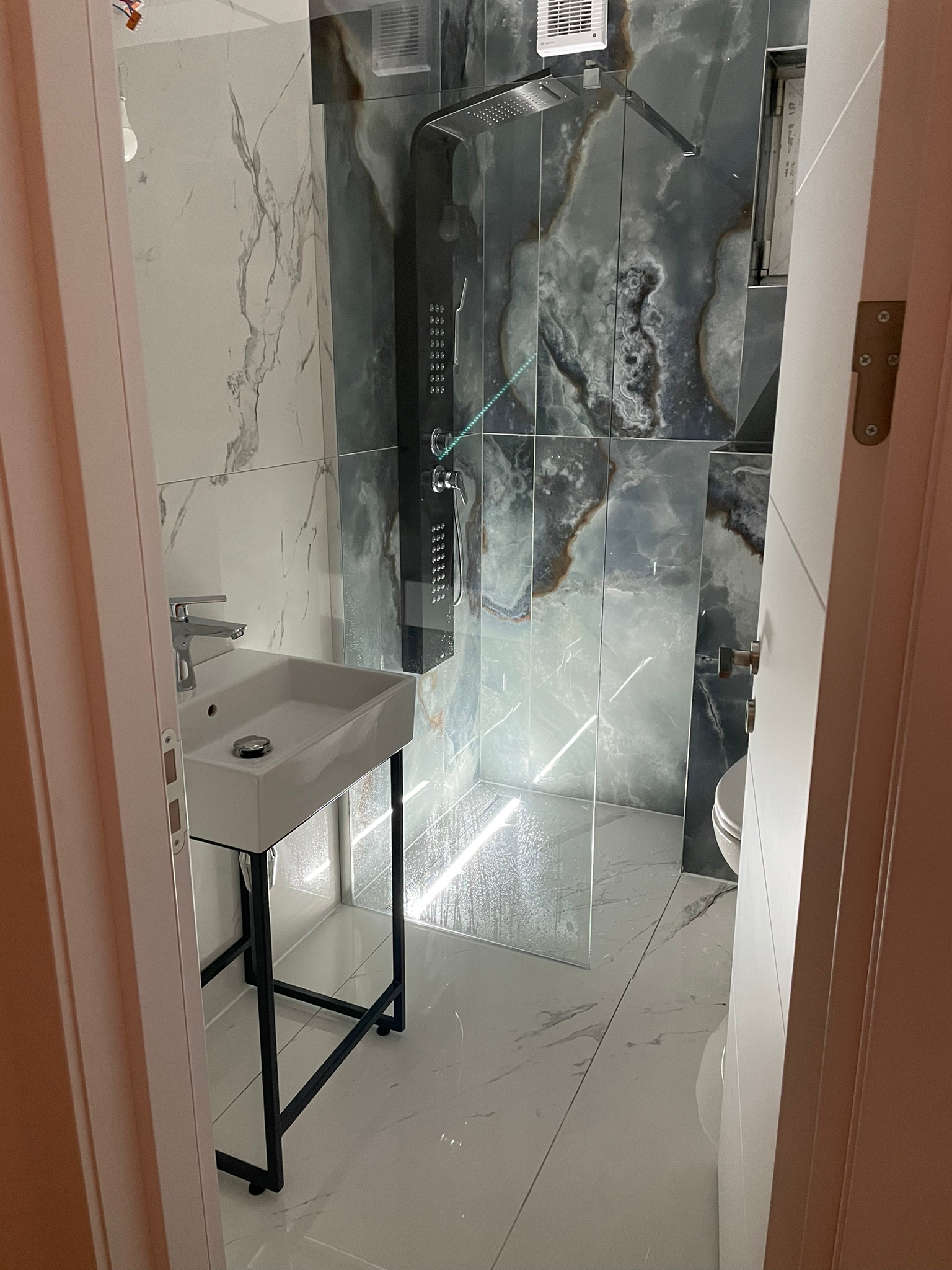 Locuința este prevăzută cu două dormitoare, dintre care unul matrimonial, cu baie spațioasă, dotată cu cadă cu Jacuzzi, în timp ce a doua baie a apartamentului, recent renovată, dispune de un duș cu rigolă delimitat de un paravan de sticlă iar placi de ceramică sunt de dimensiuni mari, atent alese. Echipat cu centrală termică, geamuri termopan prevăzute cu rulouri electrice, utilat complet și mobilat, electrocasnice de calitate și în mare parte noi, ușă blindată la intrarea în apartament, etc.