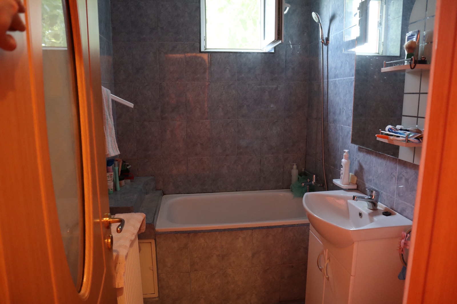 Are ferestre cu geam termopan, parchet, gresie, faianta, usa metalica.