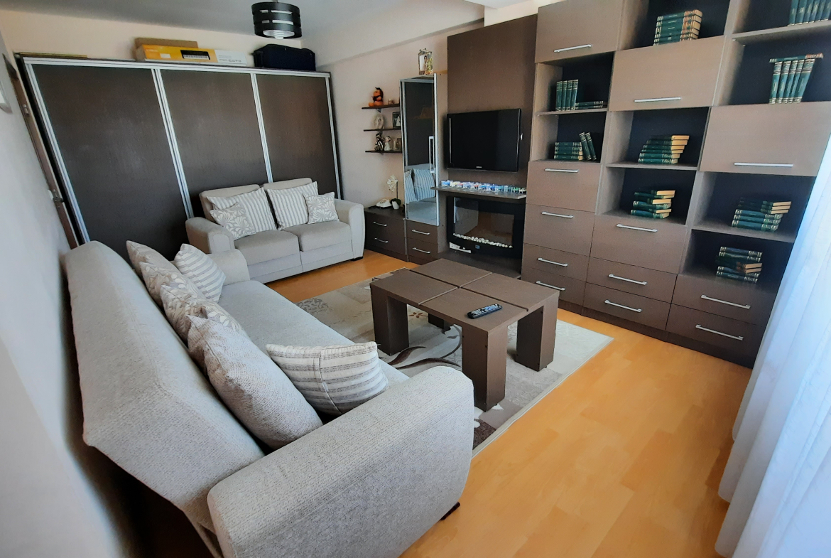 Apartamentul are suprafata desfasurata de 74mp, iar cea utila de 64 mp, se vinde complet mobilat si utilat fiind format din: