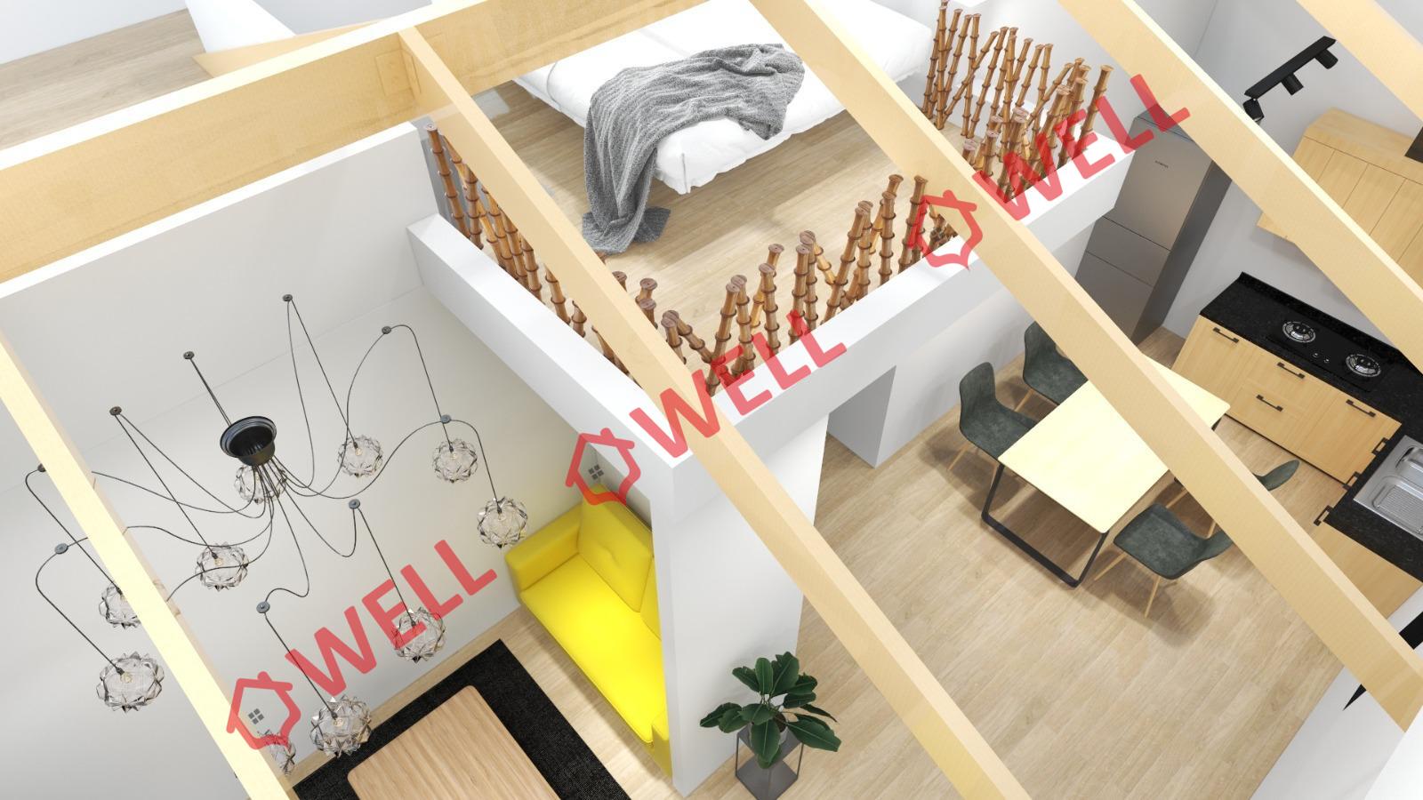 Az ingatlan elosztása: 2 szoba és galéria. A lakás modern kialakítású, világos, jól kihasználható terekkel rendelkezik.