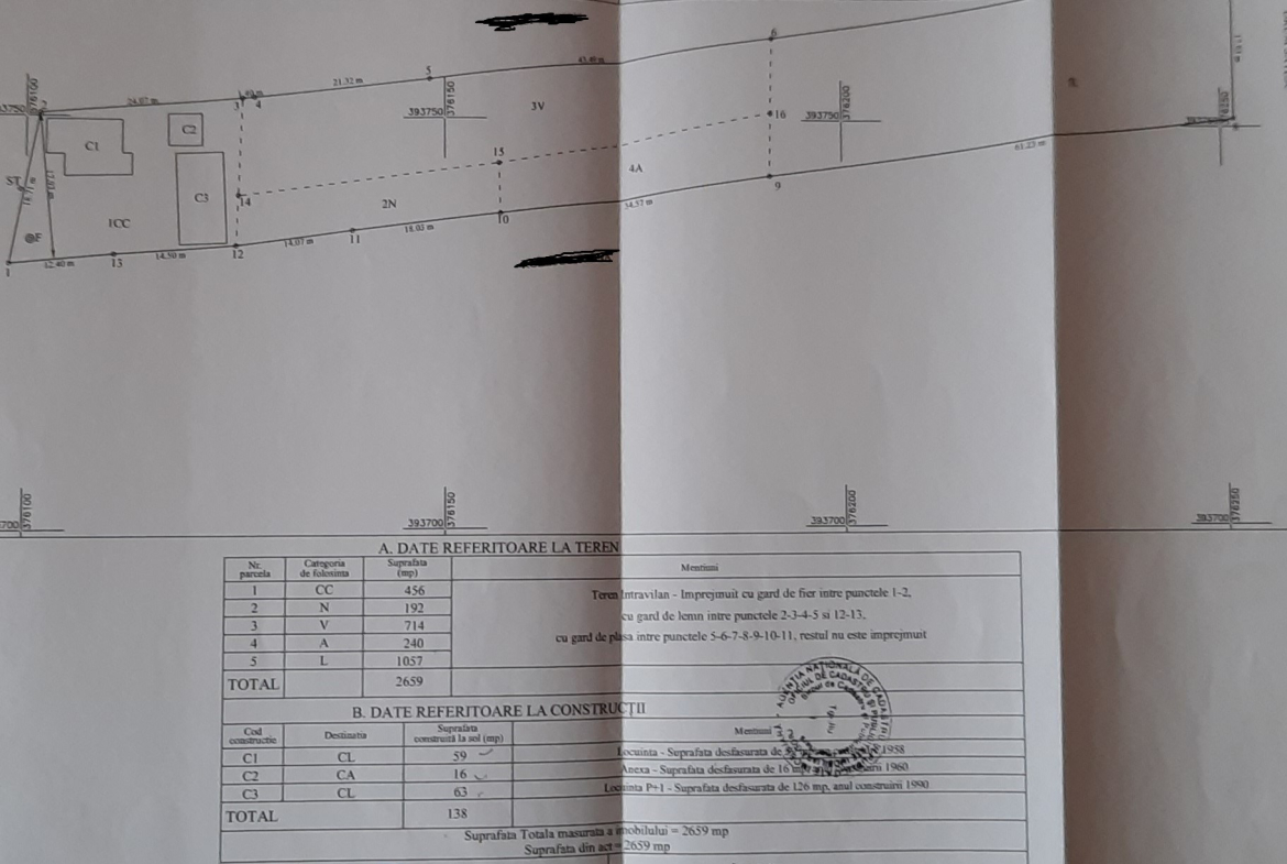 Teren cu suprafata totala de 2700 mp(deschidere stradala de 19 m) total imprejmuit, cu 1000mp livada de pomi fructiferi, 700mp de plantatie de vie traditionala si teren de gradina.