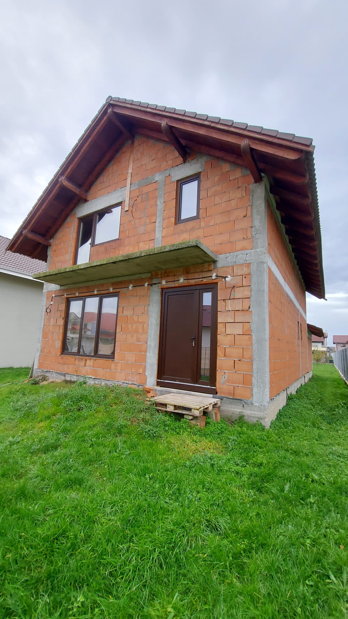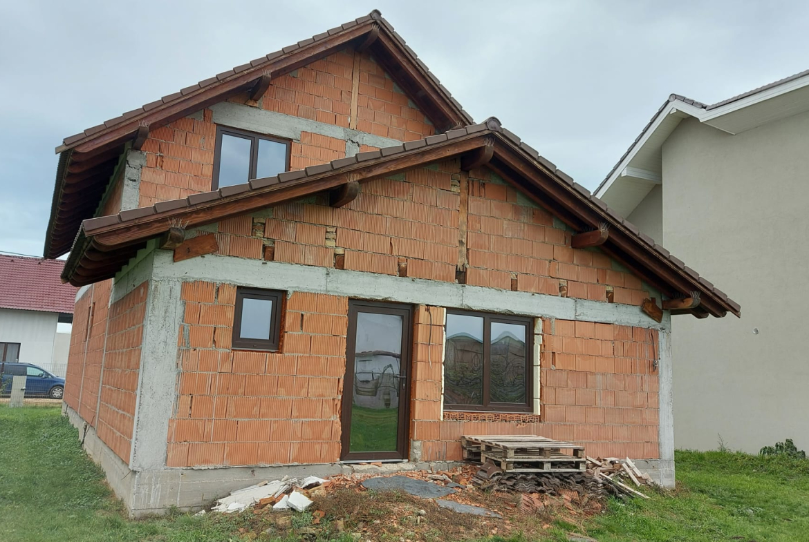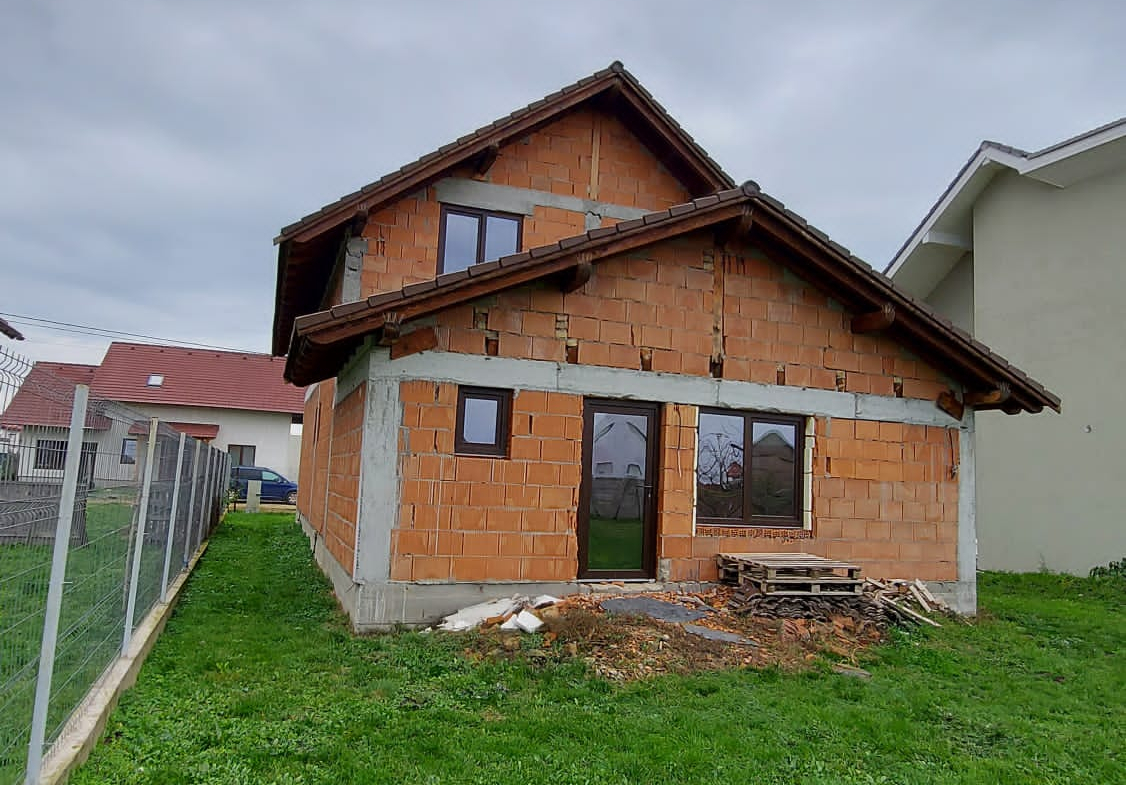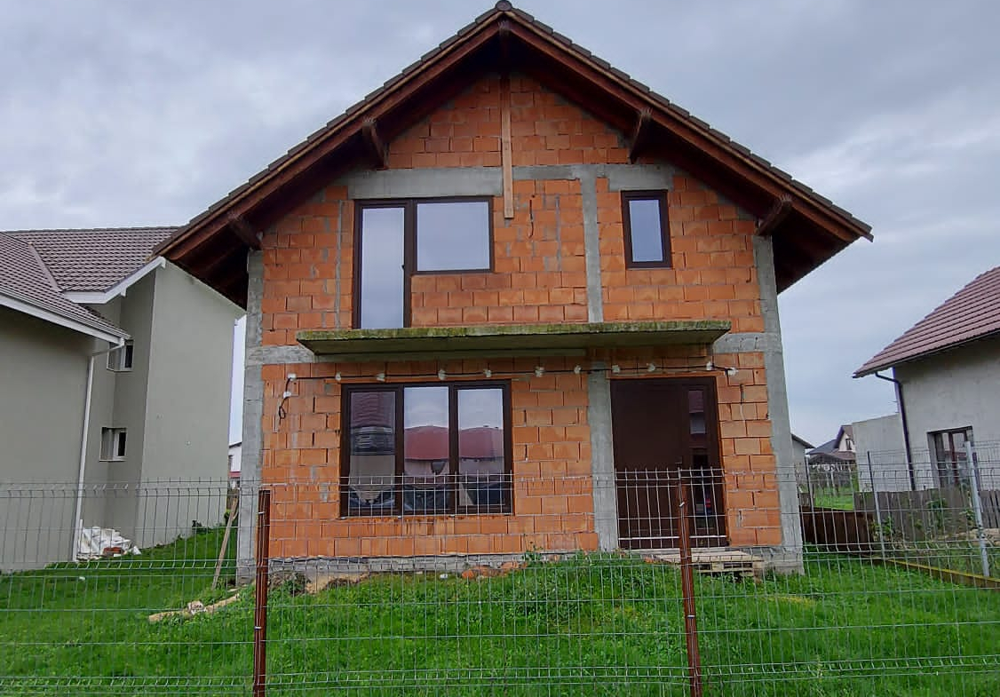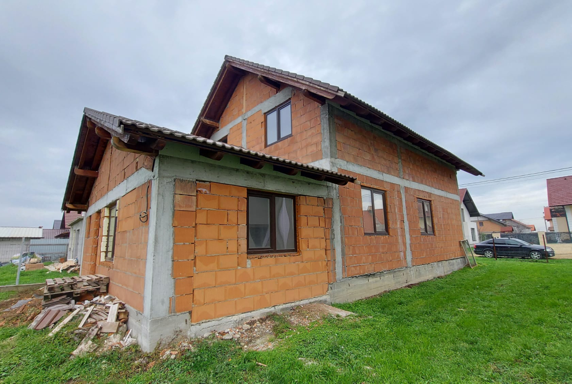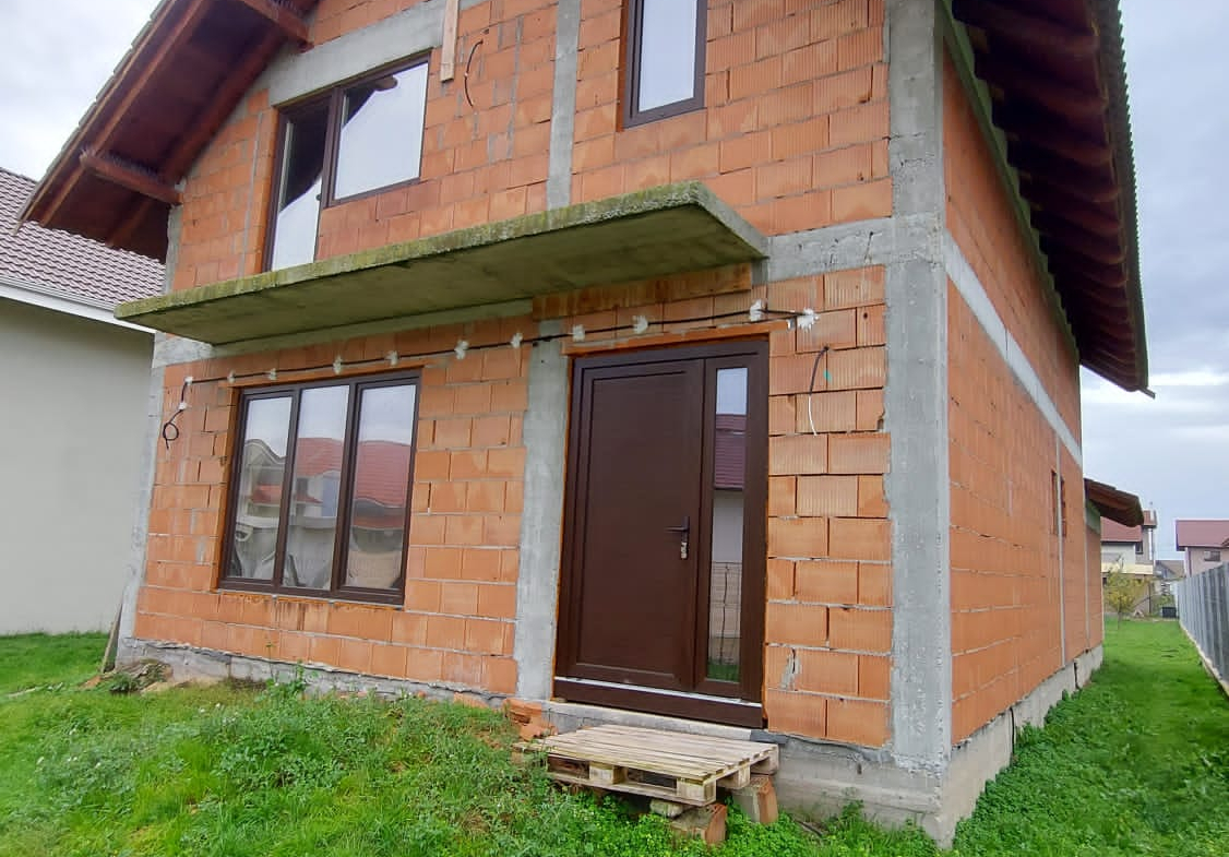 Vand casa P+M in loc Dudestii Noi. La doar 14km de Timisoara,casa fiind situata intr-un cartier rezidential. Supraf terenului este de 735mp. Front stradal de 15mp. Supraf desfasurata este de 194mp. Supraf construita este de 120mp.Casa este la rosu,are geamuri termopan,usi ext si instalatie electrica trifazic. Parter: living,dormitor,baie,bucatarie,camara si camera centralei. Mansarda: trei dormitoare,un dressing,baie .