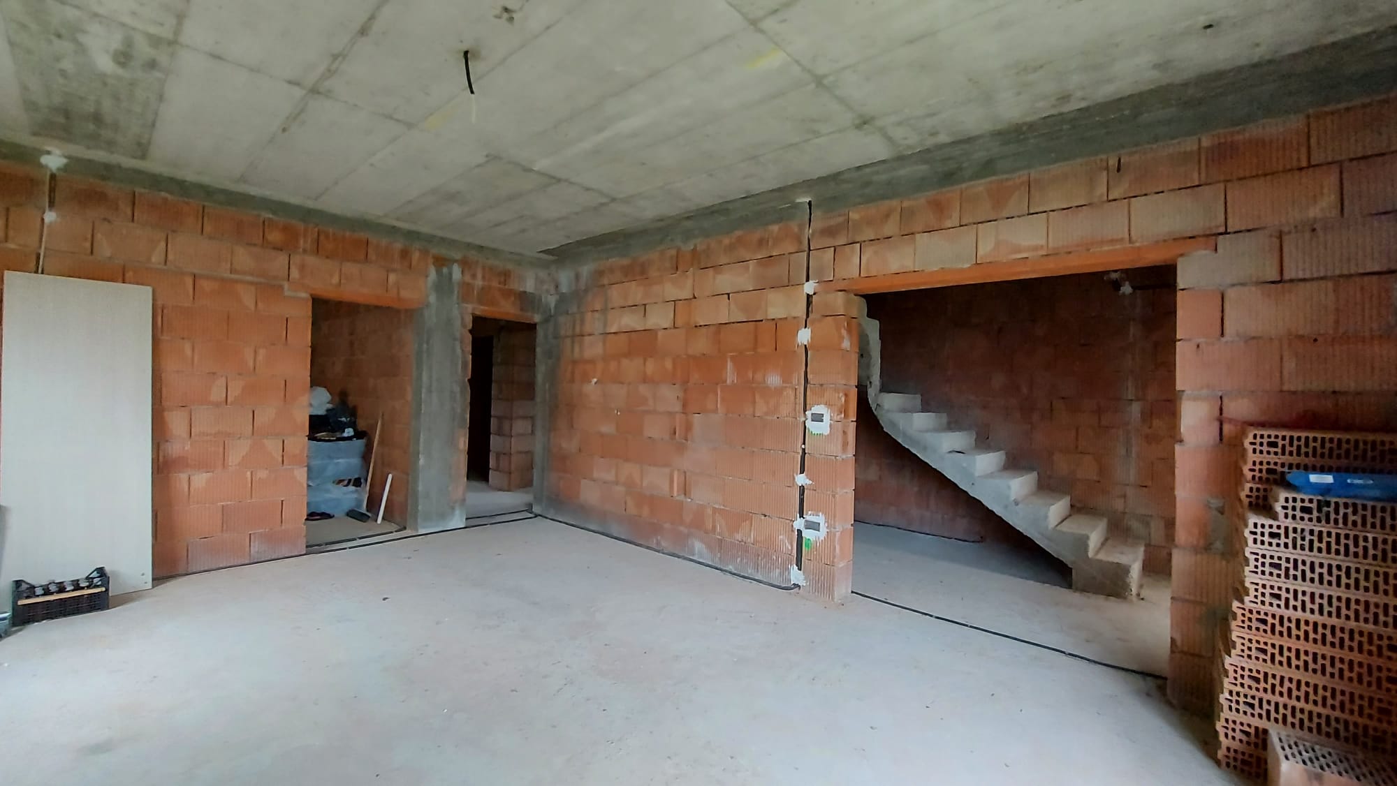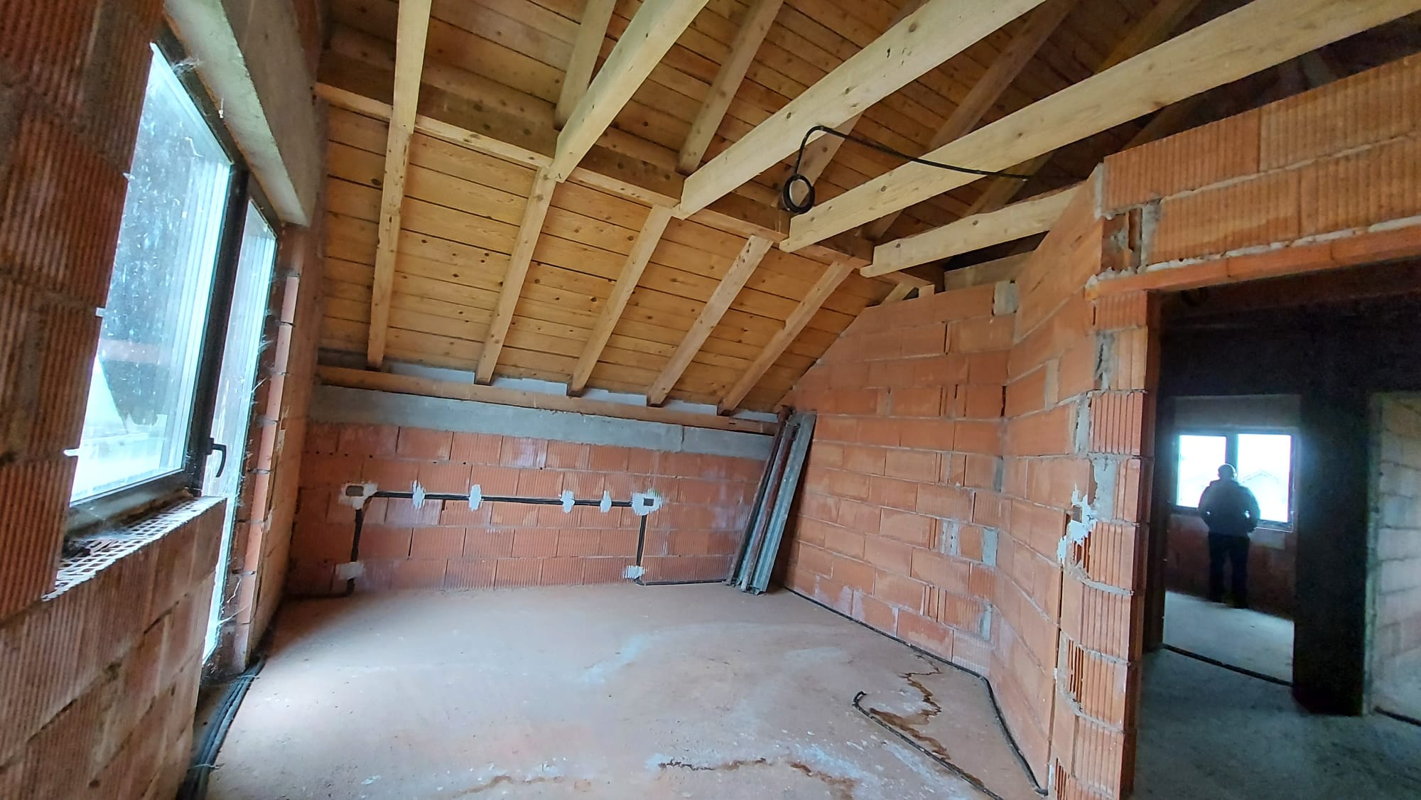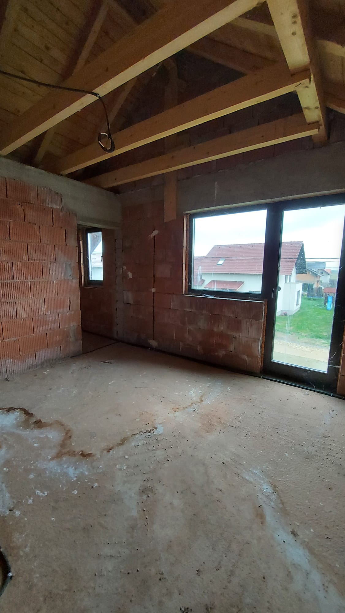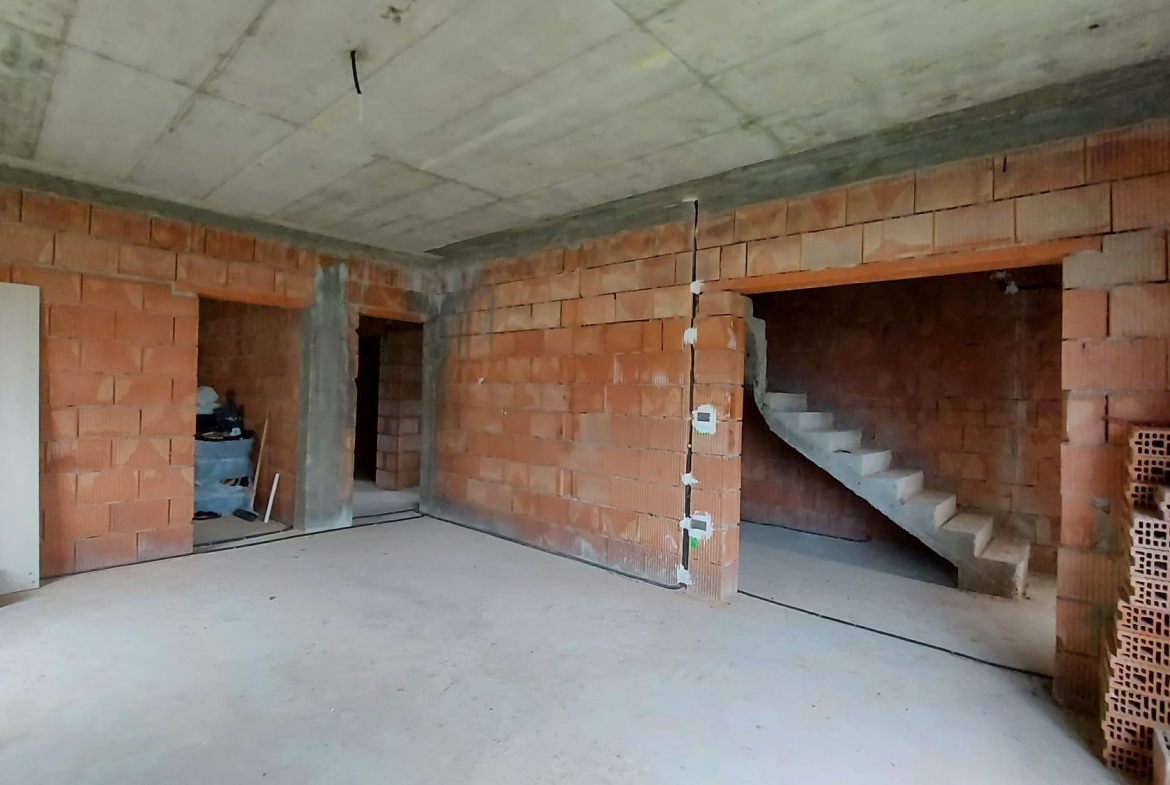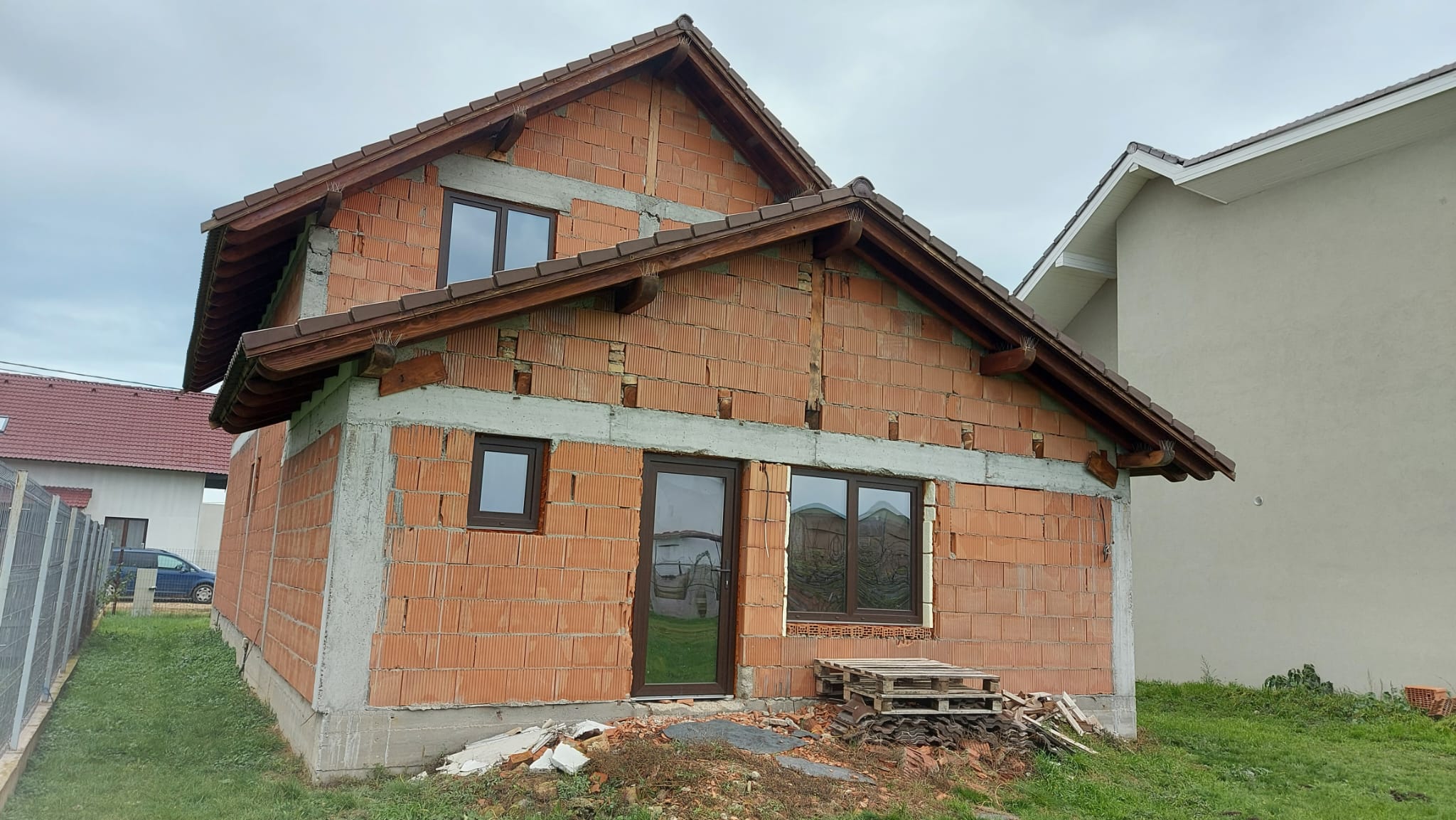 Vand casa P+M in loc Dudestii Noi. La doar 14km de Timisoara,casa fiind situata intr-un cartier rezidential. Supraf terenului este de 735mp. Front stradal de 15mp. Supraf desfasurata este de 194mp. Supraf construita este de 120mp.Casa este la rosu,are geamuri termopan,usi ext si instalatie electrica trifazic. Parter: living,dormitor,baie,bucatarie,camara si camera centralei. Mansarda: trei dormitoare,un dressing,baie .