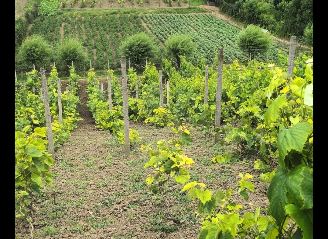 Vând casă în localitatea Scobinți,județul Iași, 4 camere+hol+baie, dependență de vară cu baie+bucătărie+hol+hâj, fânar, fântână, apă rajac. Conductă gaz la poartă, curte+grădină de 4500m² din care 3000m² vie+livadă de 60 pomi de anul acesta sub Dealul lui Vodă, vedere superbă la șosea la 3km de Hârlău.