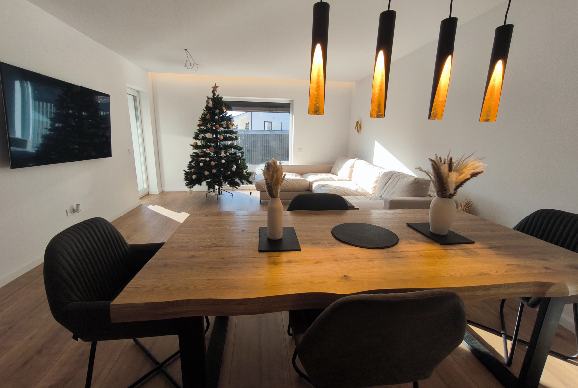 Casa a fost construita si amenajata in 2023 si este locuita de la finalul anului 2023. Casa se preda in stadiul de mobilata si utilata ultra modern, cu materiale premium cum ar fi: