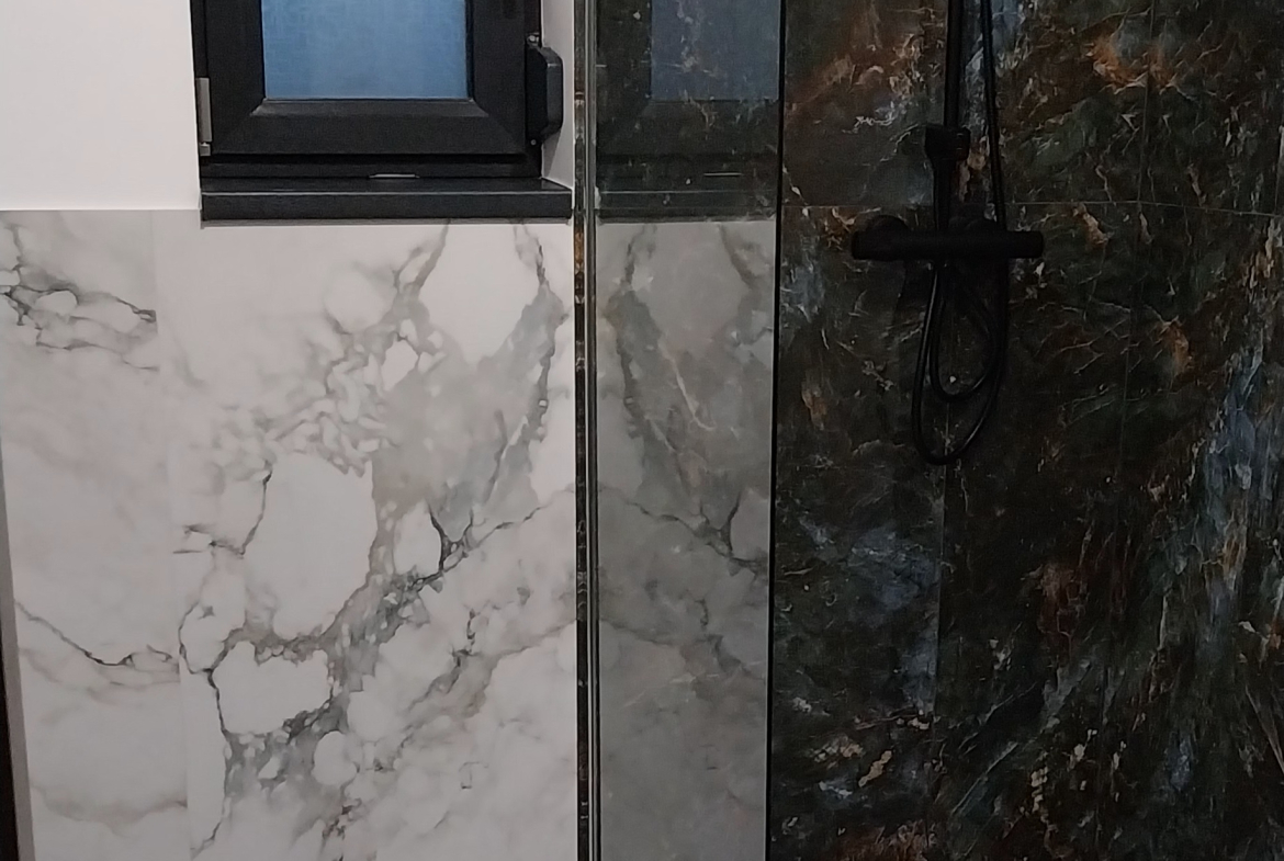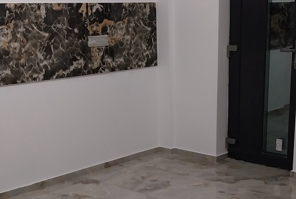 Finisaje deosebite, scări placate cu granit fiamat platinum gray, glafuri exterioare granit lucios platinum grey, gresie și faianță de calitate placi mari 120×60 . Băile și balcoanele cu hidroizolație sika.