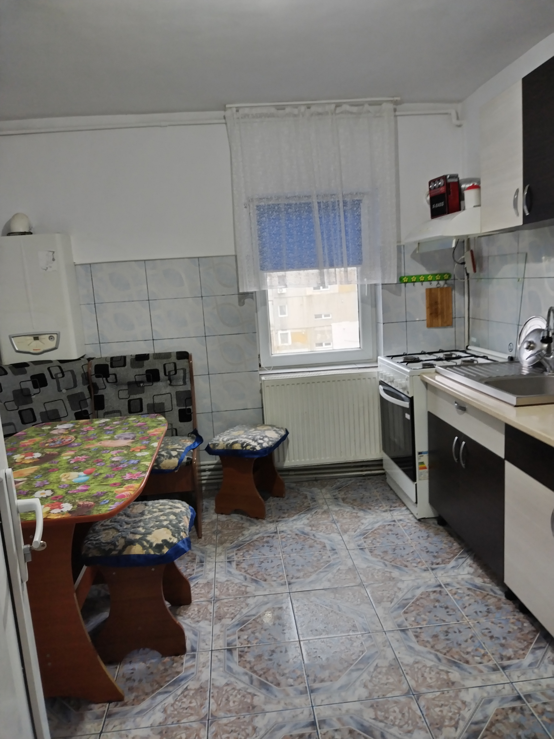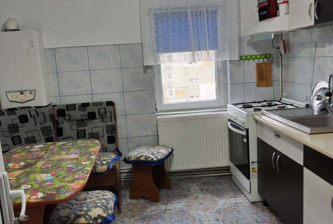 Apartament cu 4 camere, decomandat, îmbunătățit decent, centrală termică, gaze naturale, apă individual, aer condiționat, gresie și faianță.