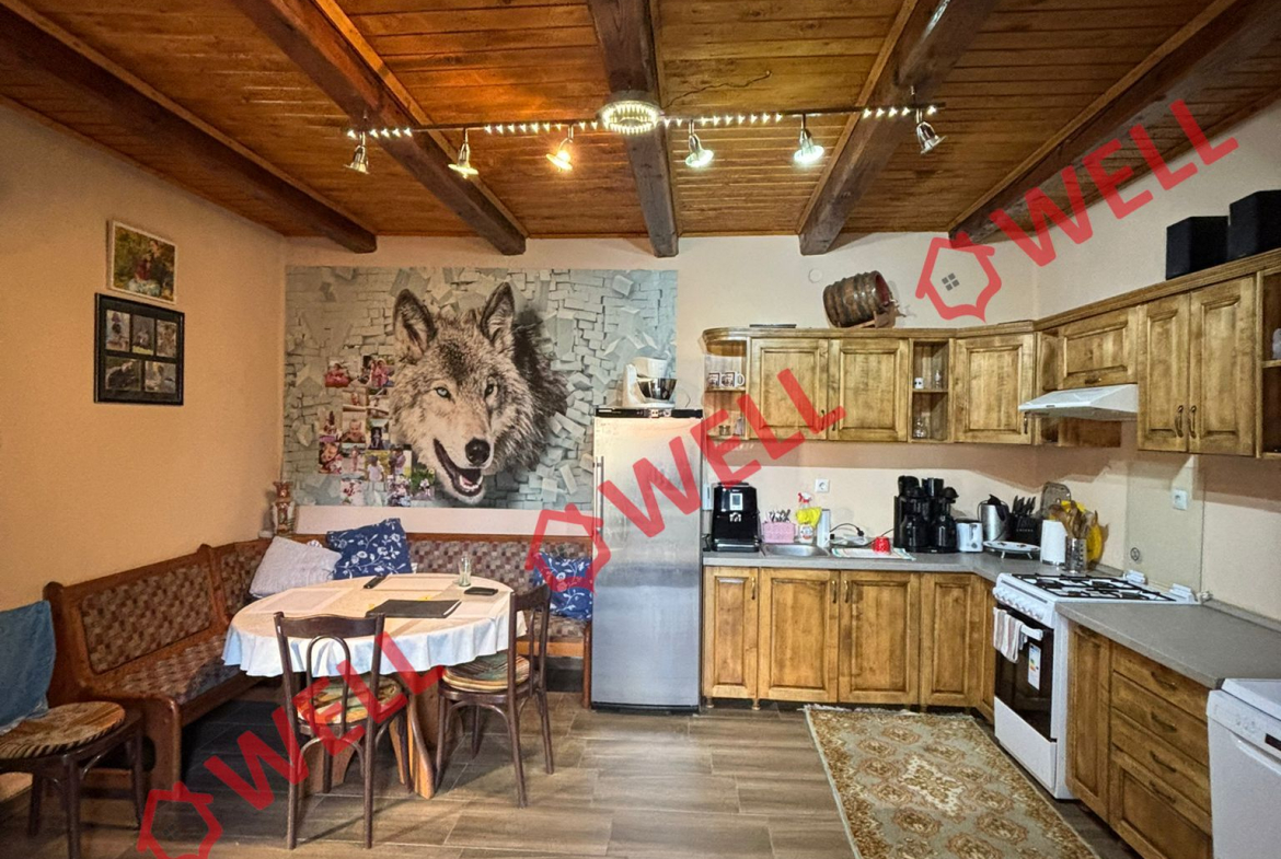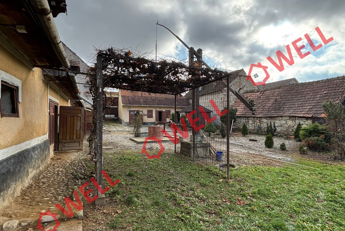 Pe teren se află două case construite din cărămidă. Casa mai mică include o bucătărie mare, o bucătărie mai mică (unde se află și un cuptor tradițional) și o cămară. Casa mai mare este compusă dintr-o bucătărie, două camere, o baie, un hol și un pod. Sub casă se află o pivniță împărțită în trei încăperi. Încălzirea se face cu sobe pe lemne. Proprietatea dispune de alimentare cu apă din fântână proprie, prin hidrofor, are curent electric și fosă septică proprie. În curte se află anexe: un garaj, un șopron împărțit în trei părți, un hambar, un șopron pentru lemne și o filegorie. Terenul include, de asemenea, o grădină situată în spatele hambarului.