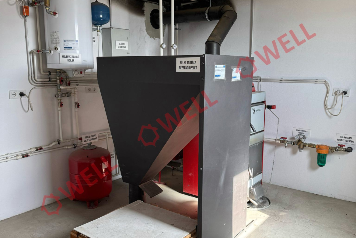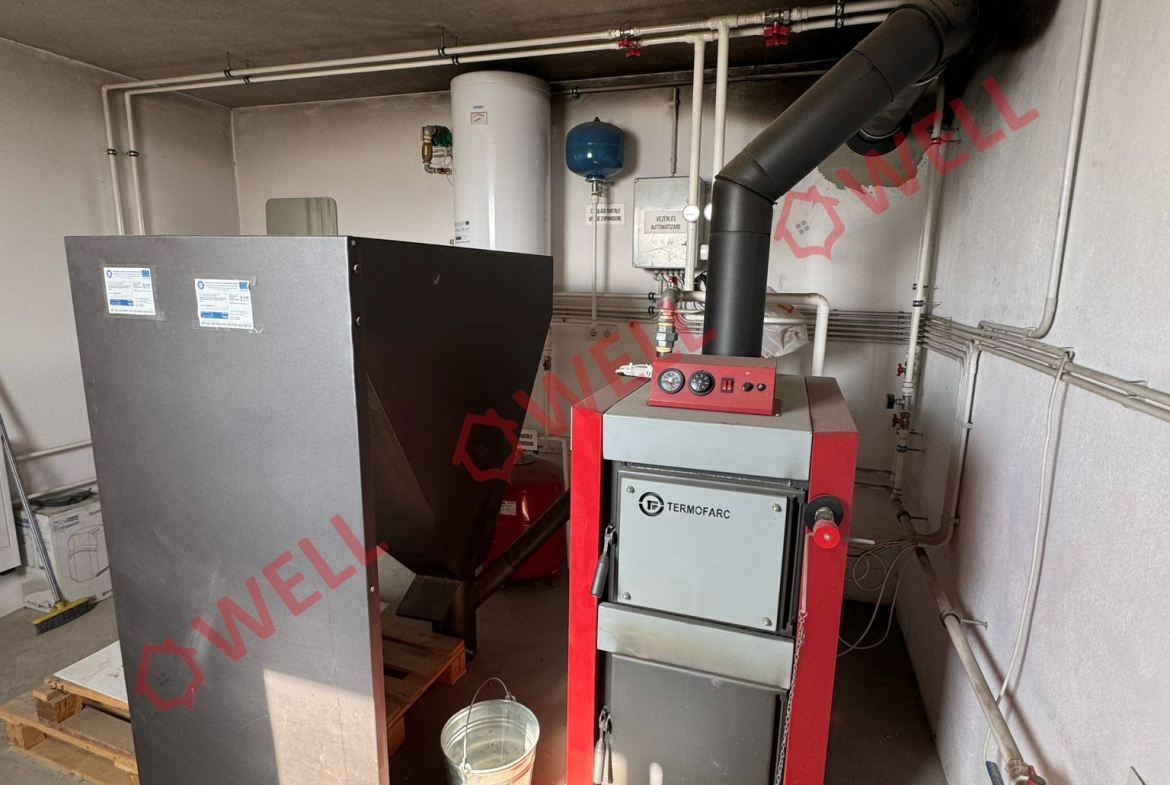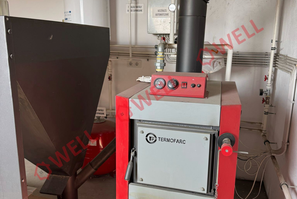 Încălzire centrală cu peleți sau lemne, este dotată cu ferestre termopan.