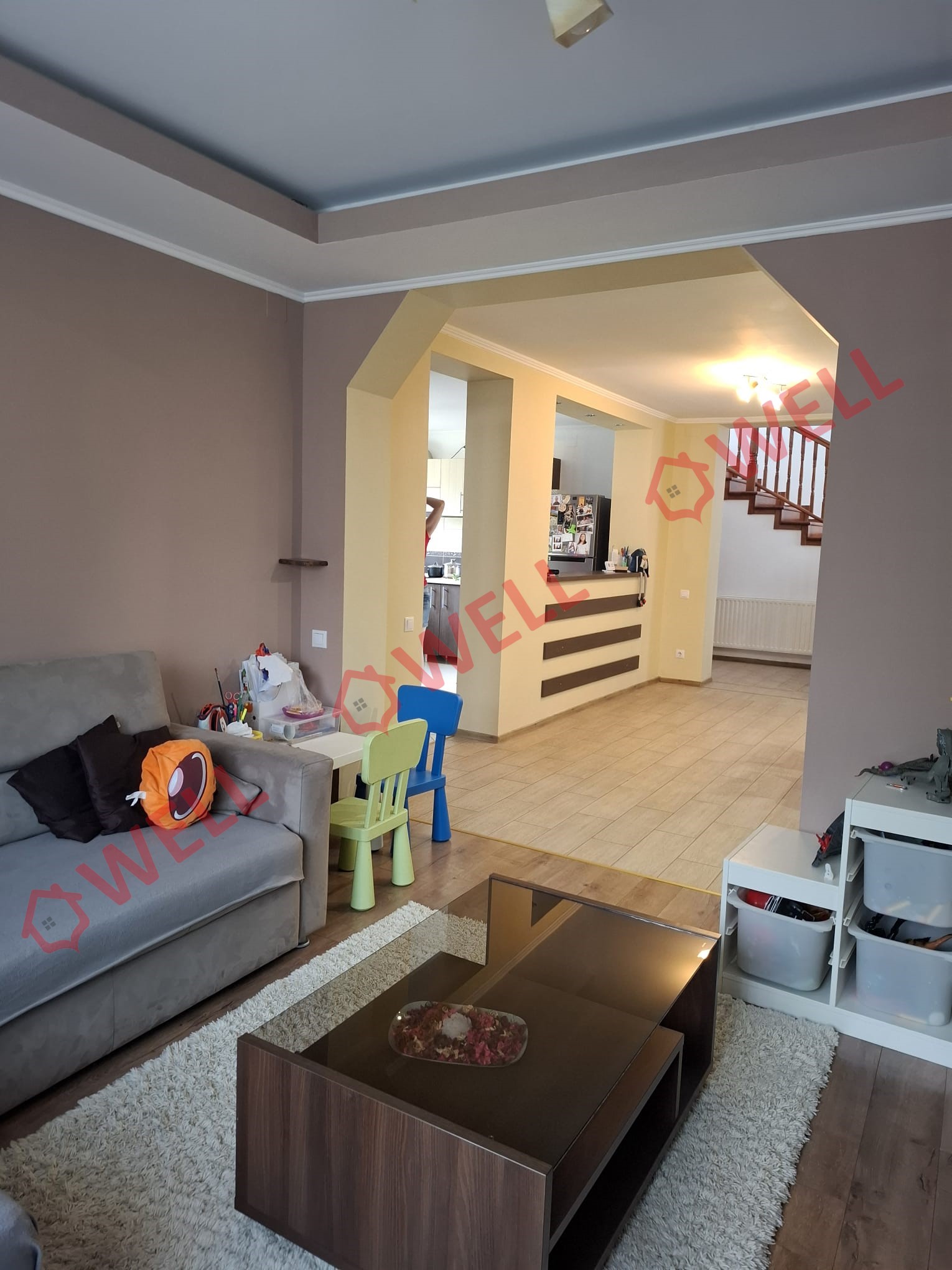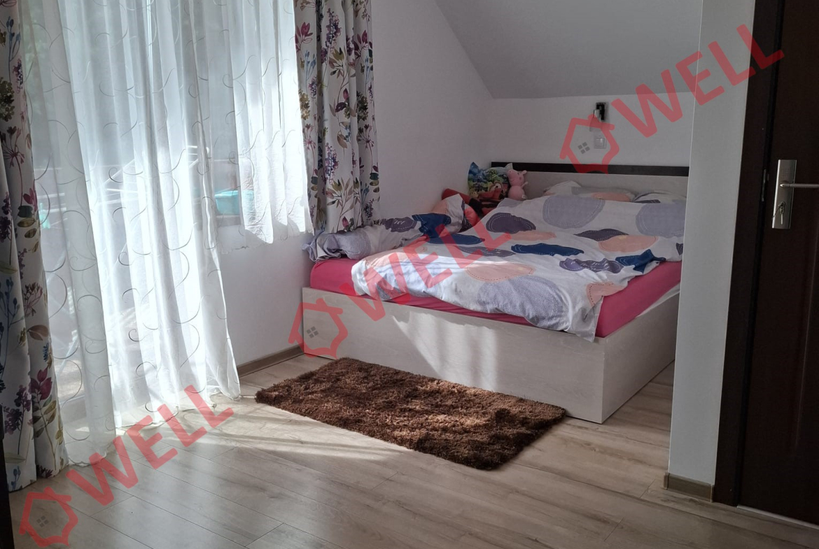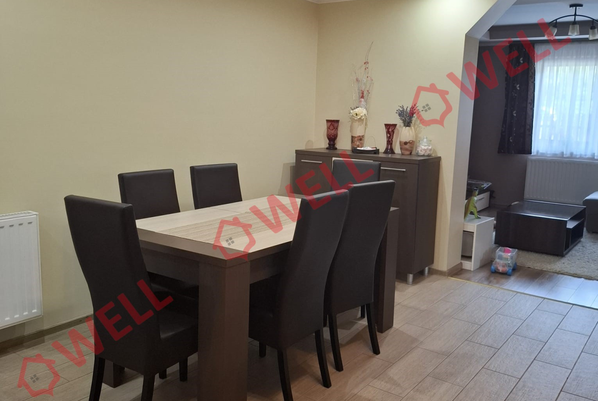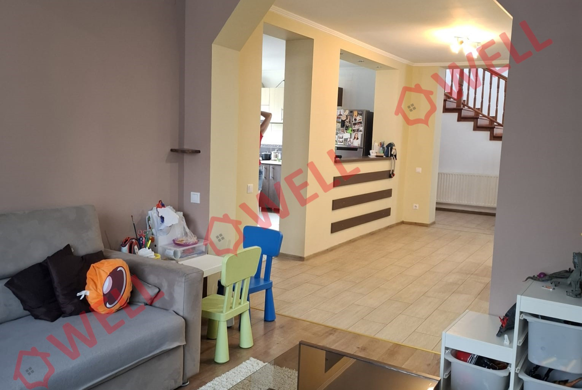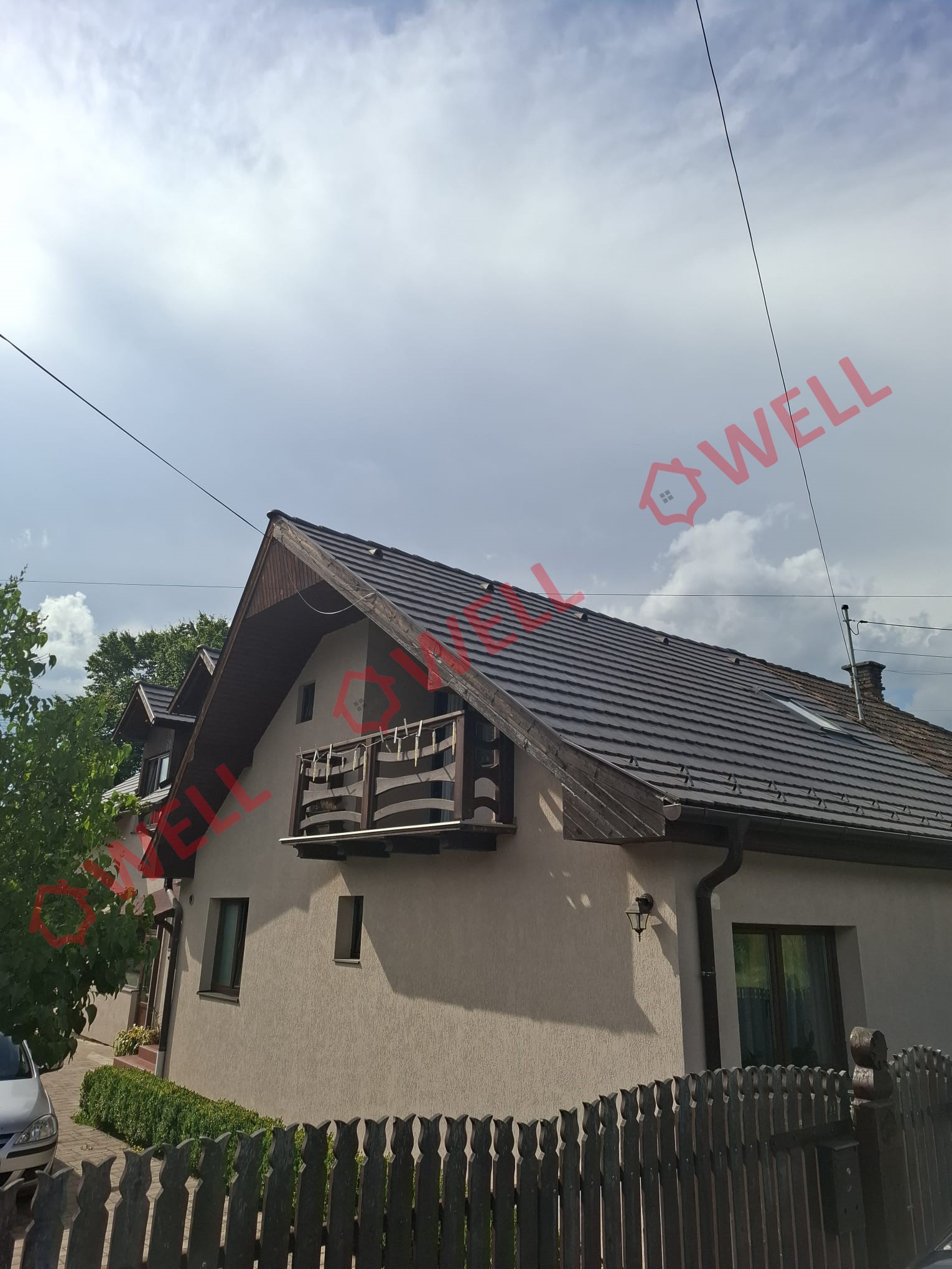Imobilul include: 5 camere, 4 băi, o bucătărie, o sufragerie, un living și o încăpere în care funcționează în prezent un salon de coafură. Casa familială este complet utilată, încălzirea este asigurată de un cazan pe lemne și de asemenea este dotată cu panouri solare care asigură apa caldă. Se vinde parțial mobilată.