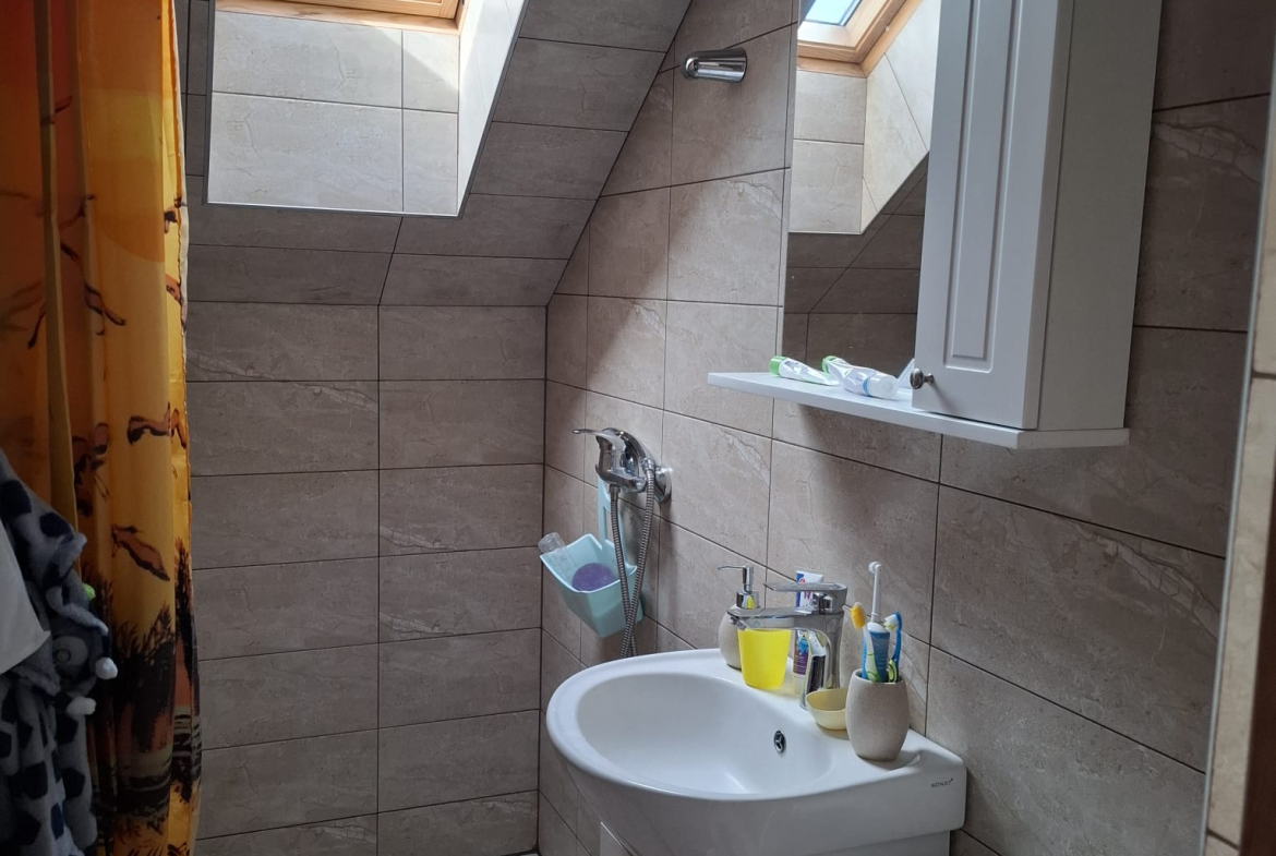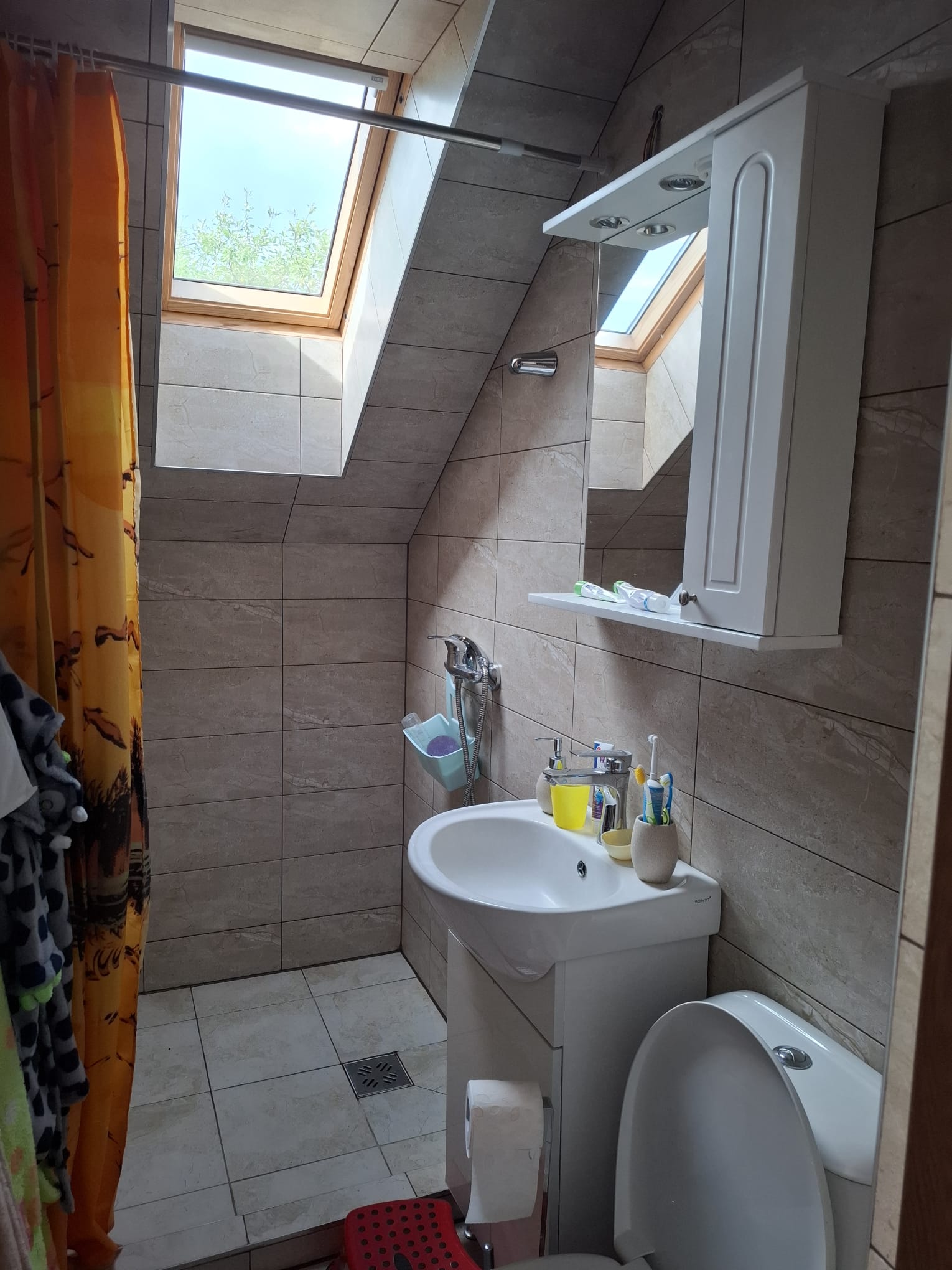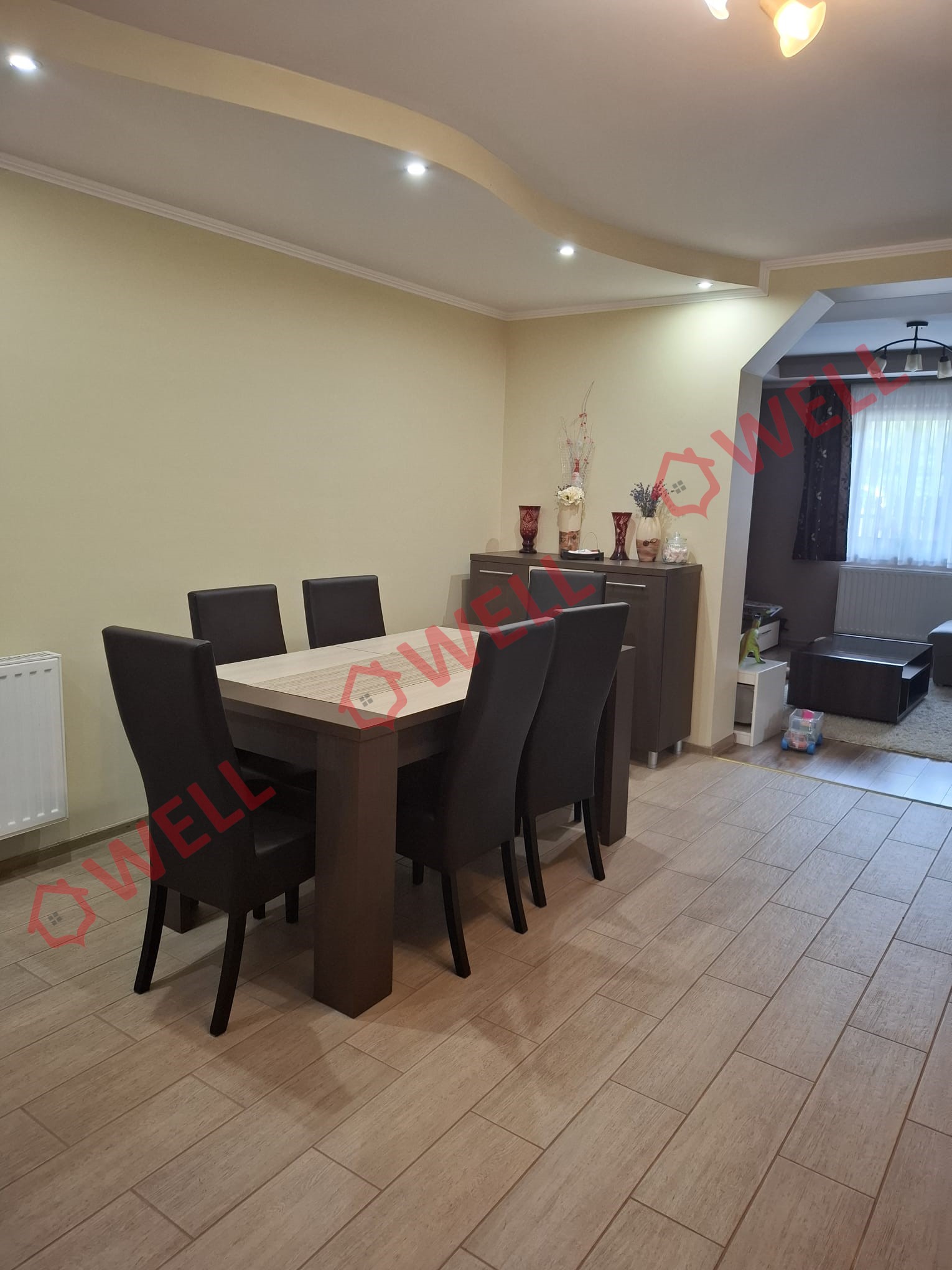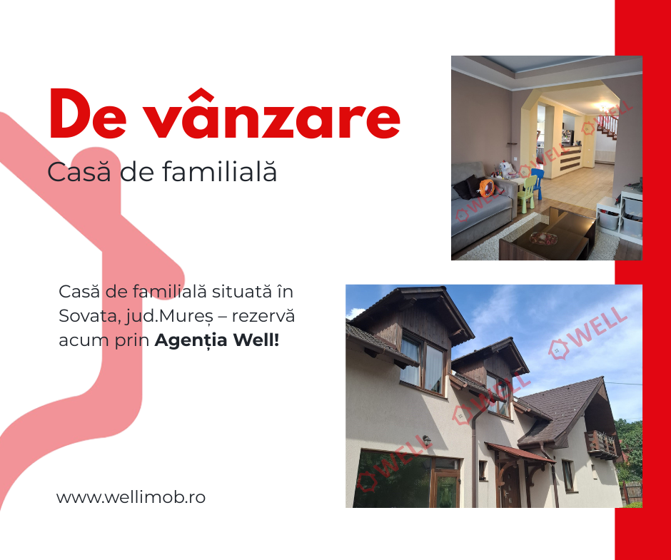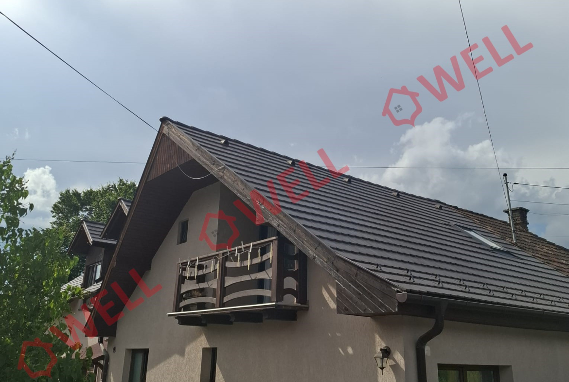 Imobilul include: 5 camere, 4 băi, o bucătărie, o sufragerie, un living și o încăpere în care funcționează în prezent un salon de coafură. Casa familială este complet utilată, încălzirea este asigurată de un cazan pe lemne și de asemenea este dotată cu panouri solare care asigură apa caldă. Se vinde parțial mobilată.