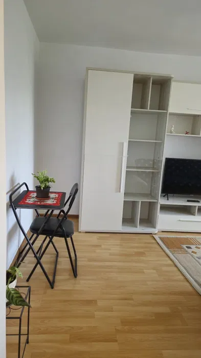 O garsoniera prezentabila de eleganta si confort compusa din camera, balcon, baie, bucatarie, hol, totul nou renovat, mobilier de calitate dotata cu toate electrocasnicele necesare, cheltuieli de intretinere fff mici, ocupabila imediat la pretul de 250 euro plus garantie.