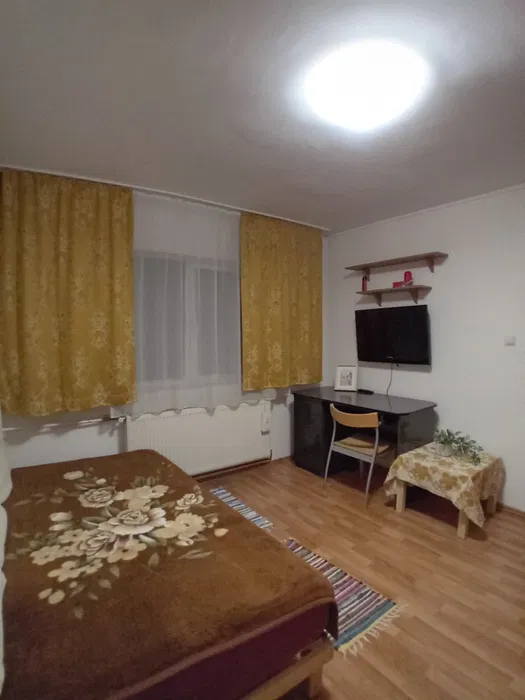 Garsoniera compusa din camera, baie, hol, bucatarie separat, total mobilata si utilata decent dotata cu toate electrocasnicele necesare TV, frigider, masina de spalat, climatizare, frumos amenajata, cheltuieli foarte mici de intretinere, ocupabila imediat la numai 170 euro chirie plus garantie.