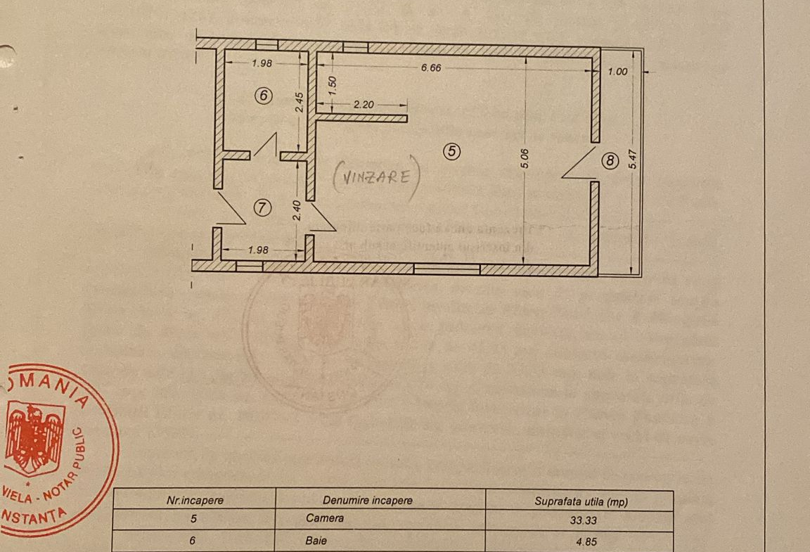 Se pune spre vânzare garsoniera spațioasă cu o suprafața totala de 48,4 mp situata în Eforie Nord. Este compusa din 1 camera, baie, hol, balcon deschis, având o curte comuna cu alți 8 proprietari. Exista posibilitatea inchiderii balconului și compartimentarea în vederea transformării în apartament. Ideala pentru locuit sau închiriat pe termen lung, fiind în zona linistita (nu este aproape de plaja!). Se poate vinde parțial mobilata sau goală și este dotata cu ușa intrare de metal, uși interior PVC, geamuri termopan, gresie/faianta, parchet, aer conditionat, boiler. Este izolata exterior, gazele sunt la poarta, renovata recent.