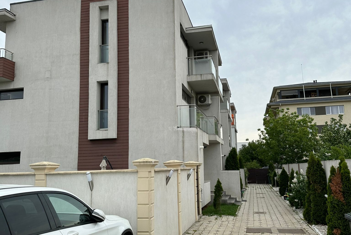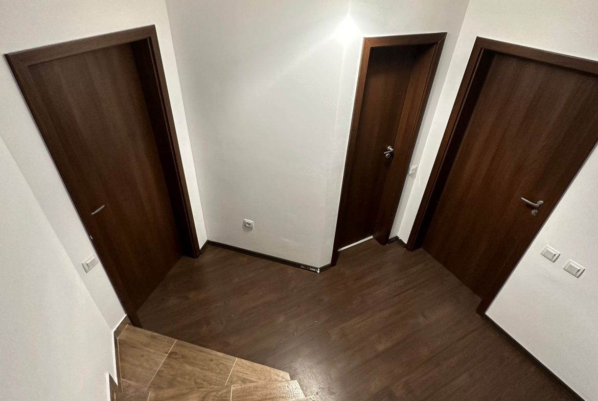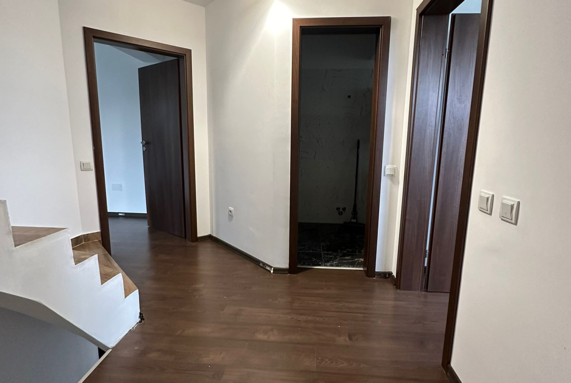 Casa este dispusa pe 2 etaje și terasa avand living+baie+bucatarie la parter,la etajul 1 sunt 2 dormitoare fiecare avand un balcon generos si baie iar la etajul 2 un dormitor cu balcon +baie+ o camera de depozitare si o terasa spațioasă