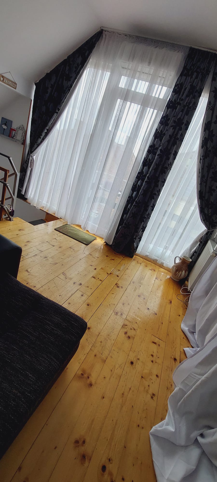 Apartamentul este la etajul 4, are gresie, faianţa, parchet, perdele.