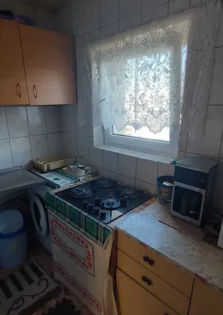 Utilat: frigider, maşina spălat, aragaz, tv. color, uşă metalică, veselă diversă.