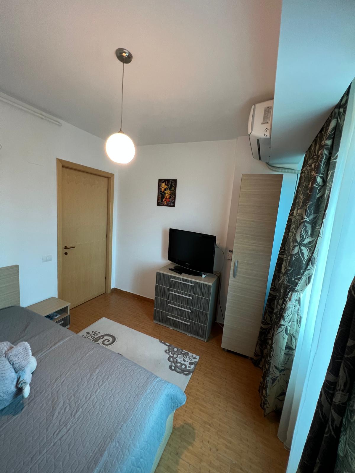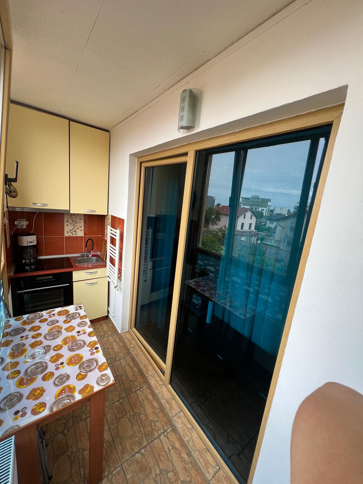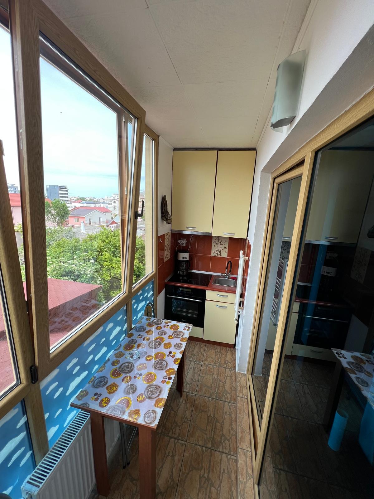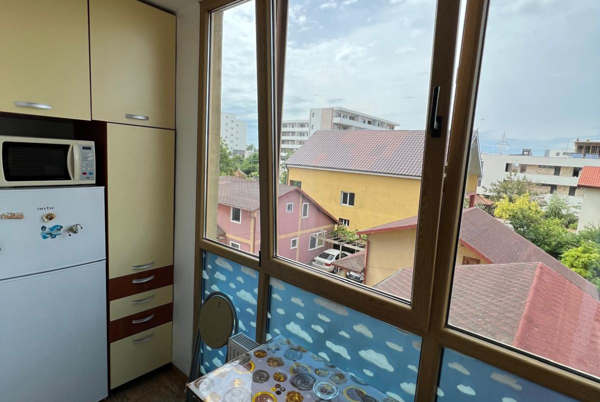 Vind apartament 2 camere decomandat în Mamaia de Nord, mobilat,utilat asa cum se vede în poze. Dispune de centrala termica pe gaz, plita și cuptor electric, cabina dus, masina de spălat și frigider, mobila bucatarie – mutata pe balconul inchis ( realizata pe comanda) , colțar extensibil în living, pat matrimonial în dormitor!