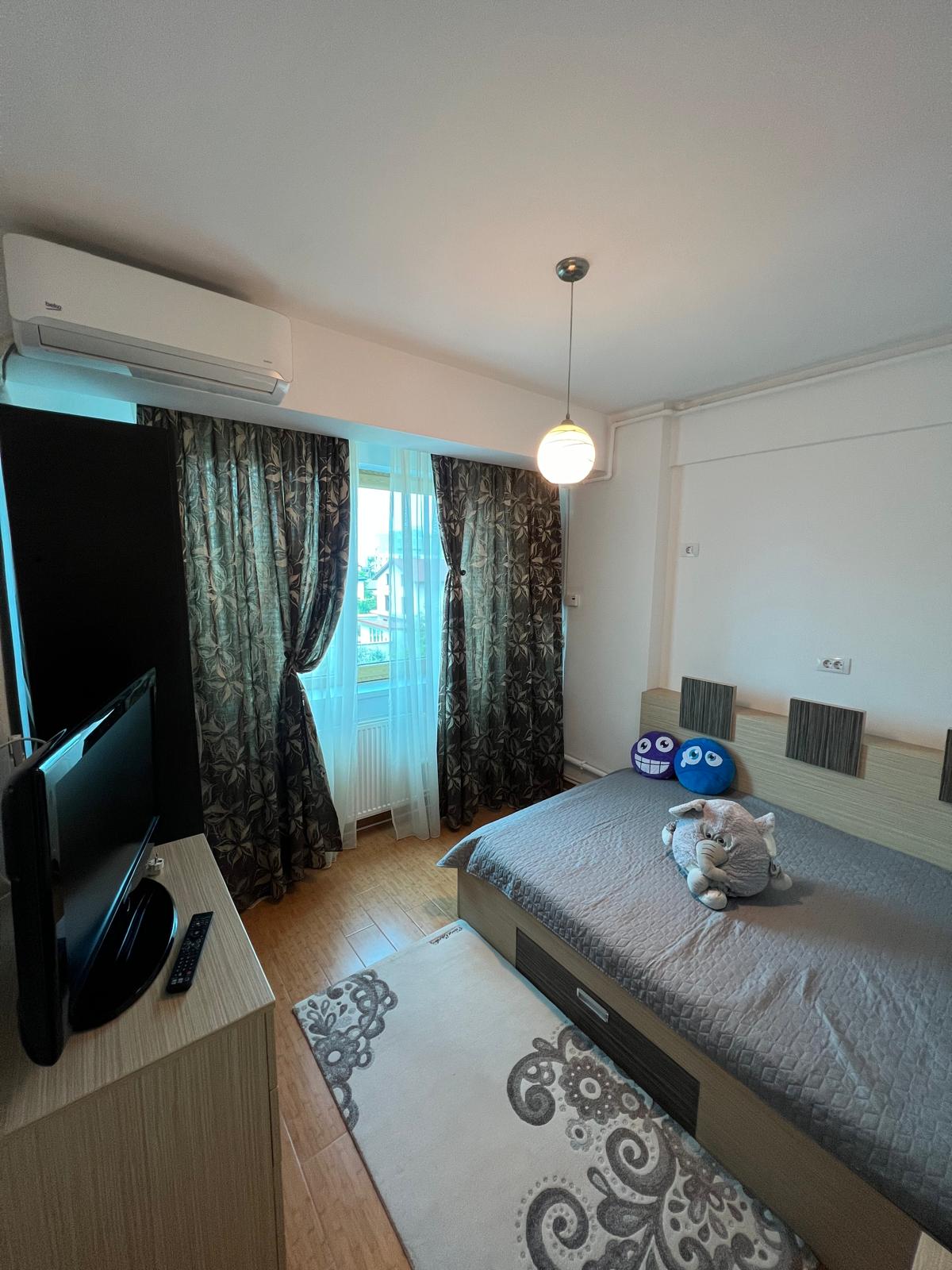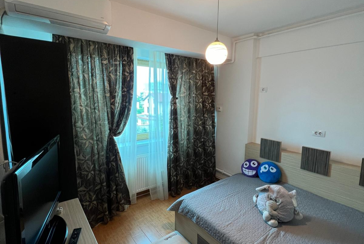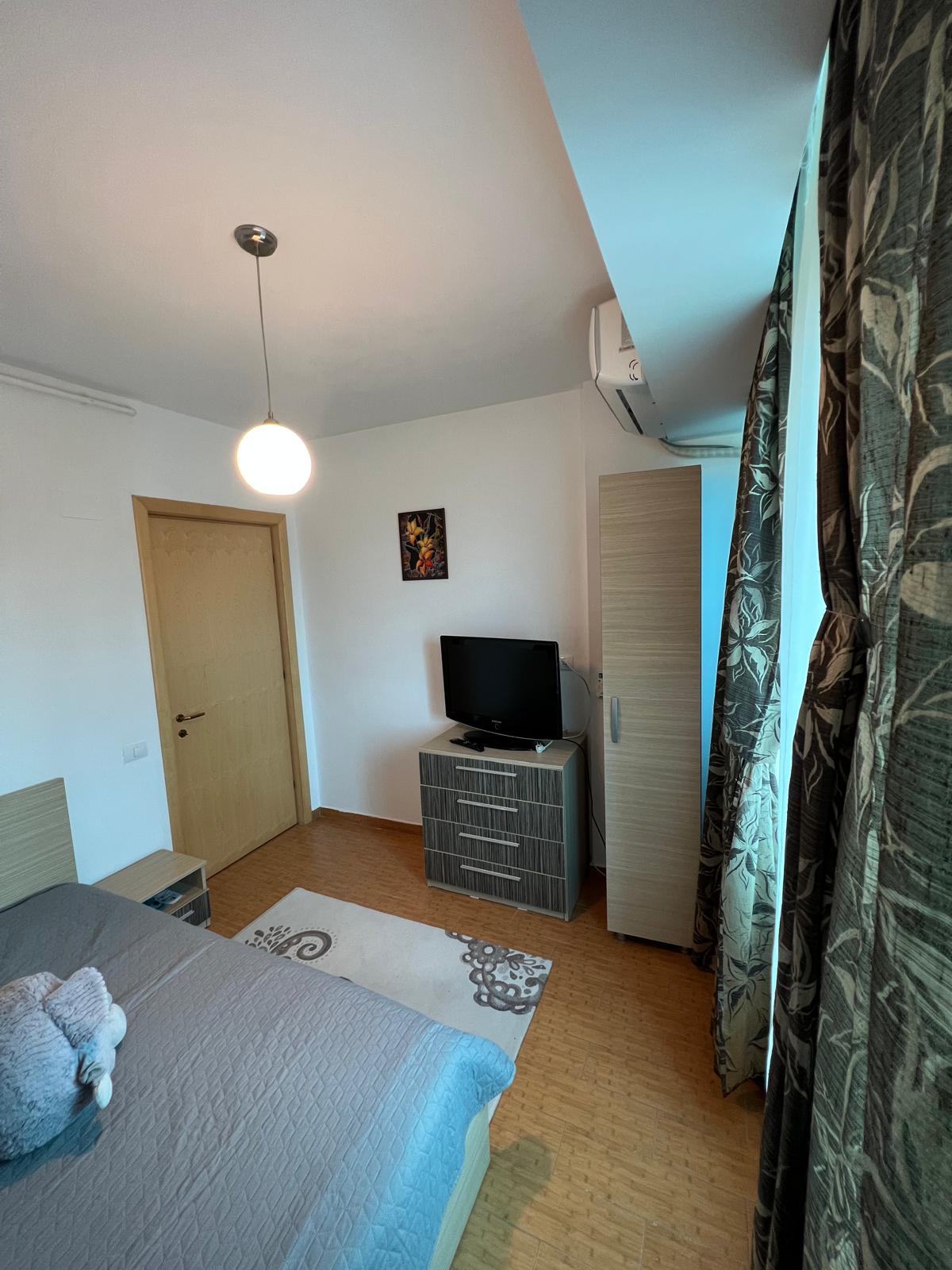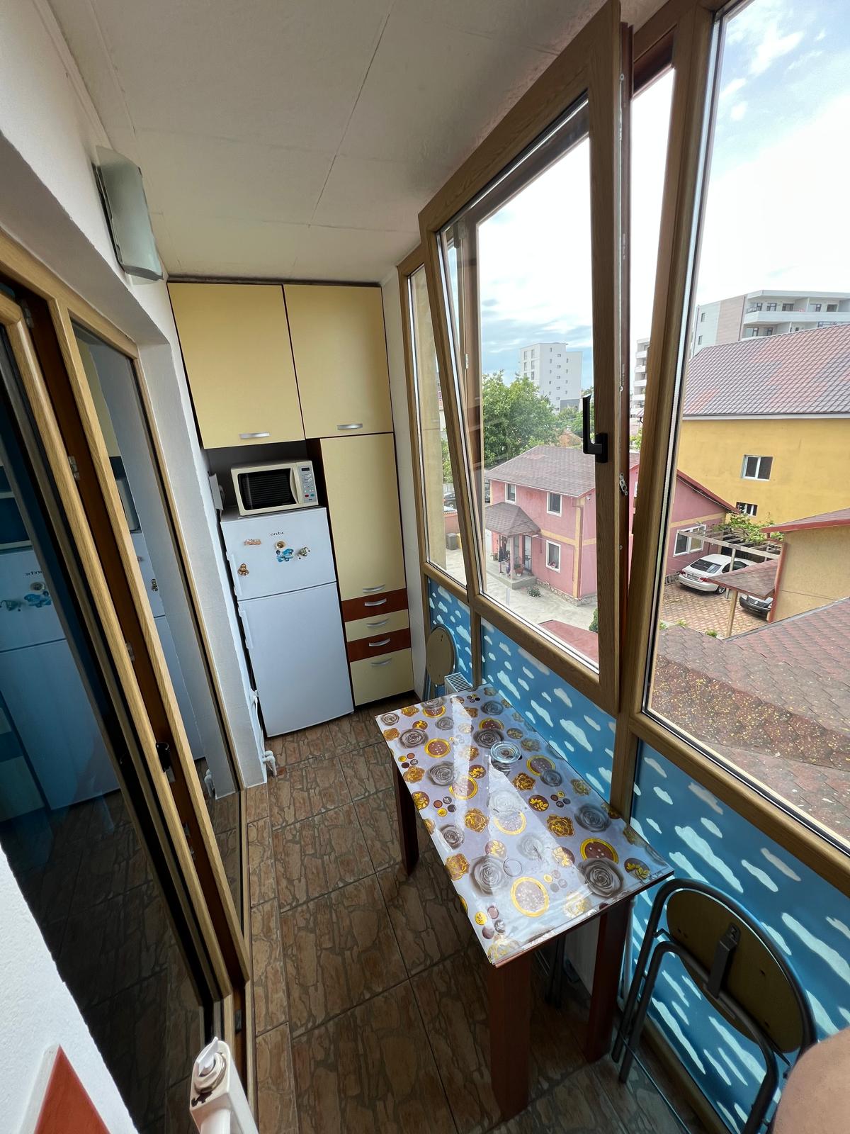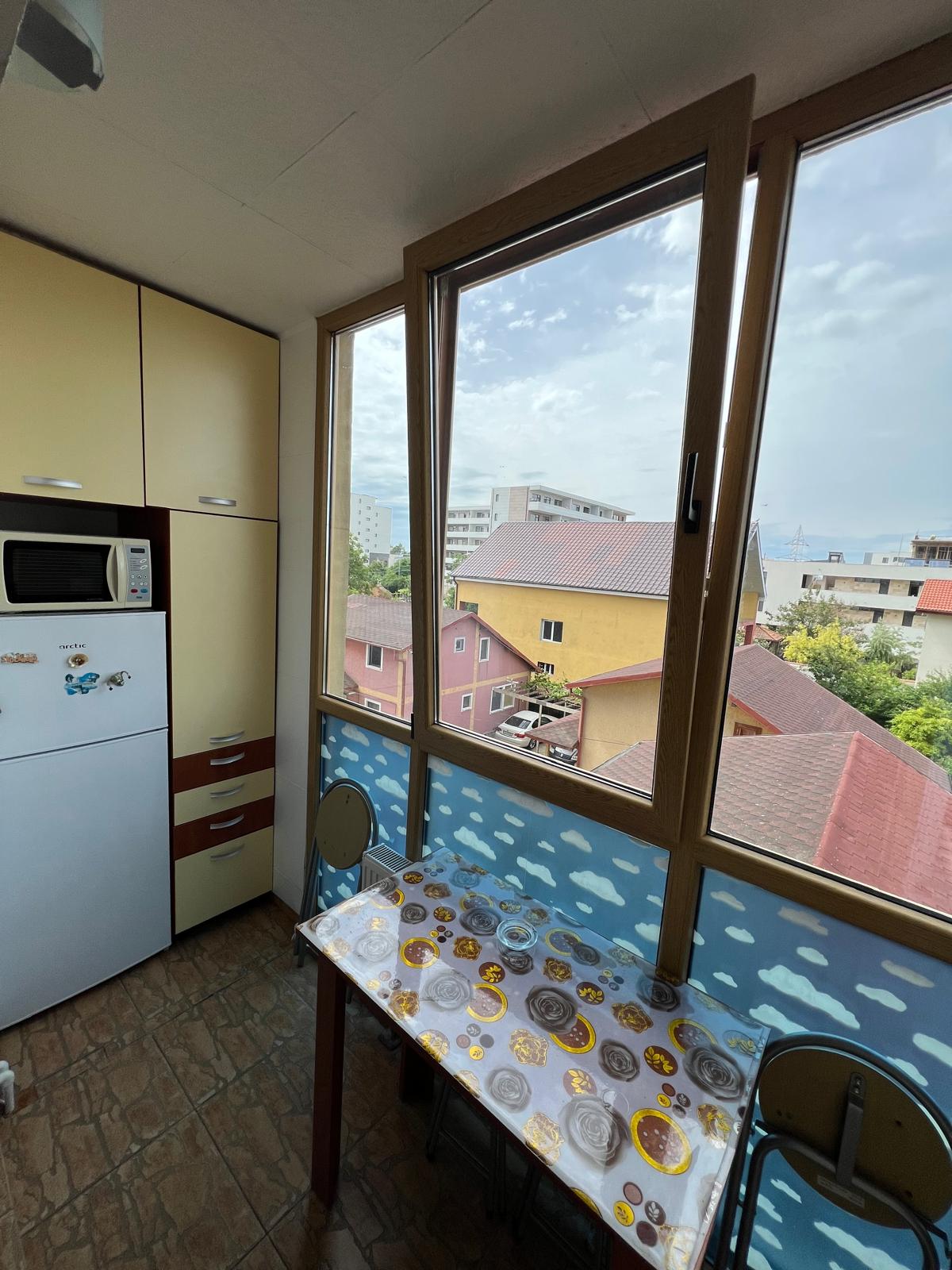 Vind apartament 2 camere decomandat în Mamaia de Nord, mobilat,utilat asa cum se vede în poze. Dispune de centrala termica pe gaz, plita și cuptor electric, cabina dus, masina de spălat și frigider, mobila bucatarie – mutata pe balconul inchis ( realizata pe comanda) , colțar extensibil în living, pat matrimonial în dormitor!
