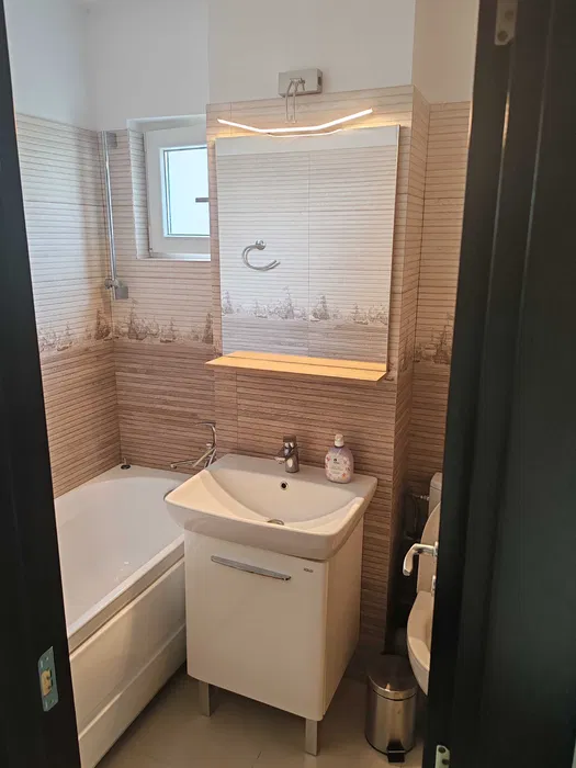Un apartament deosebit de eleganta si confort cu centrala proprie de incalzire pe gaz, cheltuieli de intretinere fff mici, totul nou si super amenajat inclusiv parchet, usi, gresie, geamuri termopan, totul mobilat si utilat modern, dotat cu toate electrocasnicele necesare TV, frigider, masina de spalat, ocupabil imediat la pretul de 300 euro chirie plus garantie.