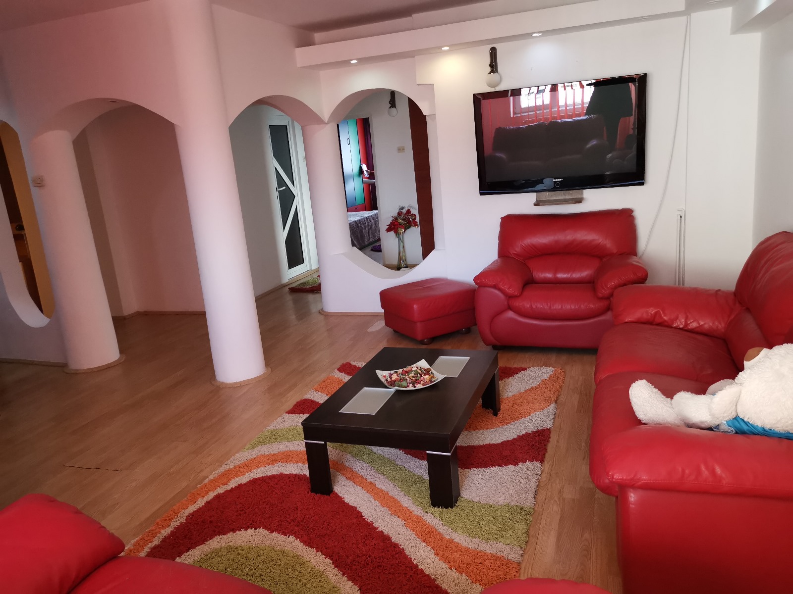 Un apartament foarte elegant in blocurile noi din cartierul rezidential Ared Uta compus din camera de zi, dormitor, bucatarie, baie, hol si un balcon tip terasa superb pe toata lungimea apartamentului cu acces si din camera de zi si din dormitor, totul mobilat si utilat modern, dotat cu toate electrocasnicele necesare, centrala proprie de incalzire, cheltuieli de intretinere fff mici, ocupabil imediat la numai 270 euro chirie plus garantie.