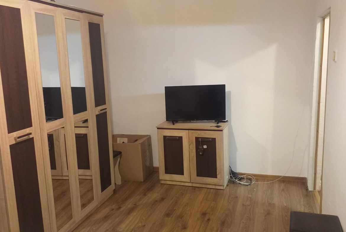 O garsoniera foarte prezentabila situata in Micalaca langa parcul Orizont compusa din camera, bucatarie, baie, hol, total mobilata si utilata decent, dotata cu toate electrocasnicele necesare TV, frigider, masina de spalat, cheltuieli mici de intretinere, ocupabila imediat la un pret foarte atractiv la numai 150 euro chirie plus garantie.