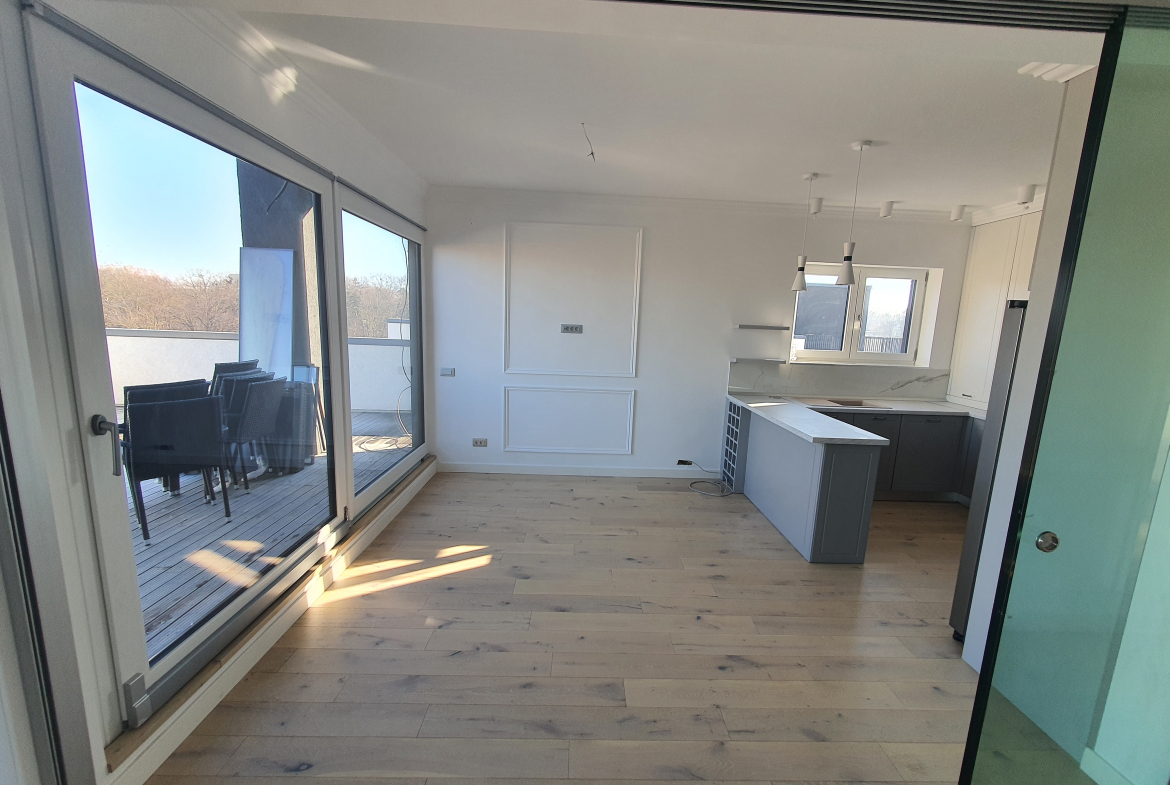 Aici ,un apartament de lux situat la etajul superior al unui imobil cu S+P+2+R)  din Arsenal Residence, este exact ce iti trebuie pentru stilul tau de viata modern, sofisticat si activ.Spatiul deschis, generos de 135 mp al apartamentului penthouse – compus din 3 dormitoare ,2 bai,bucatarie open-space si living cu iesire pe terasa ,este perfect pentru a crea caminul dorit, fiind conceput astfel încât să beneficieze de cât mai multă lumină naturală