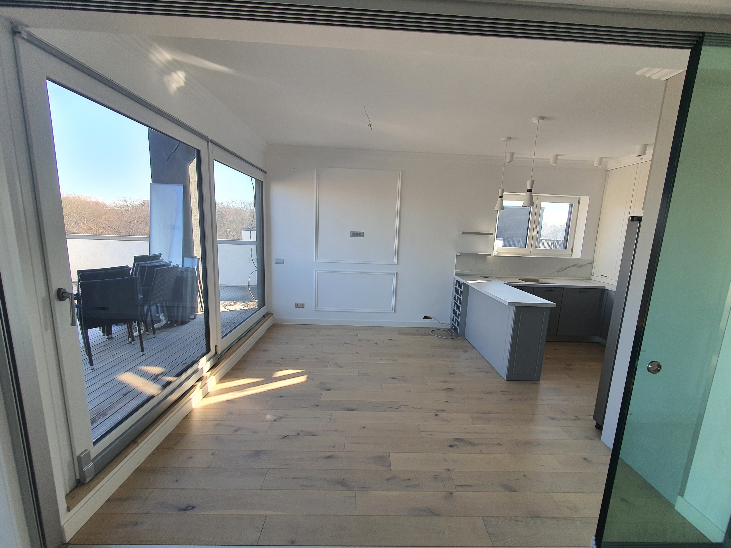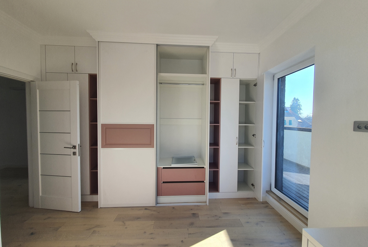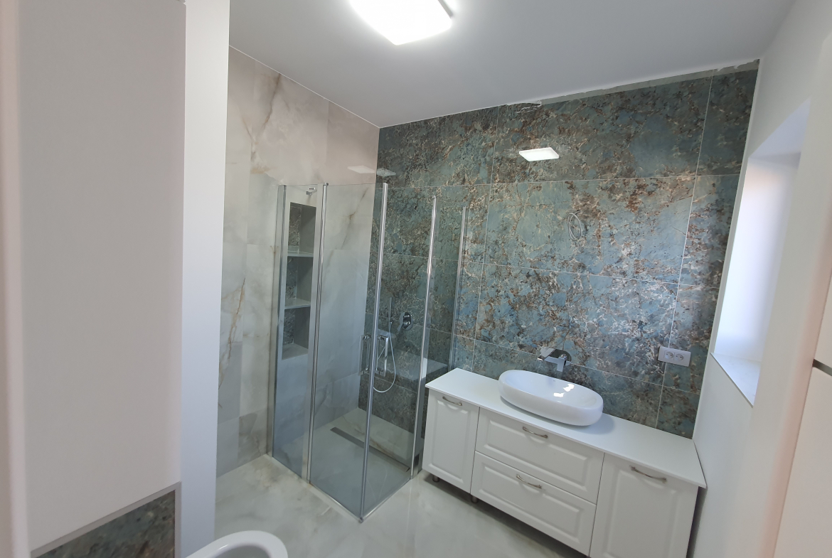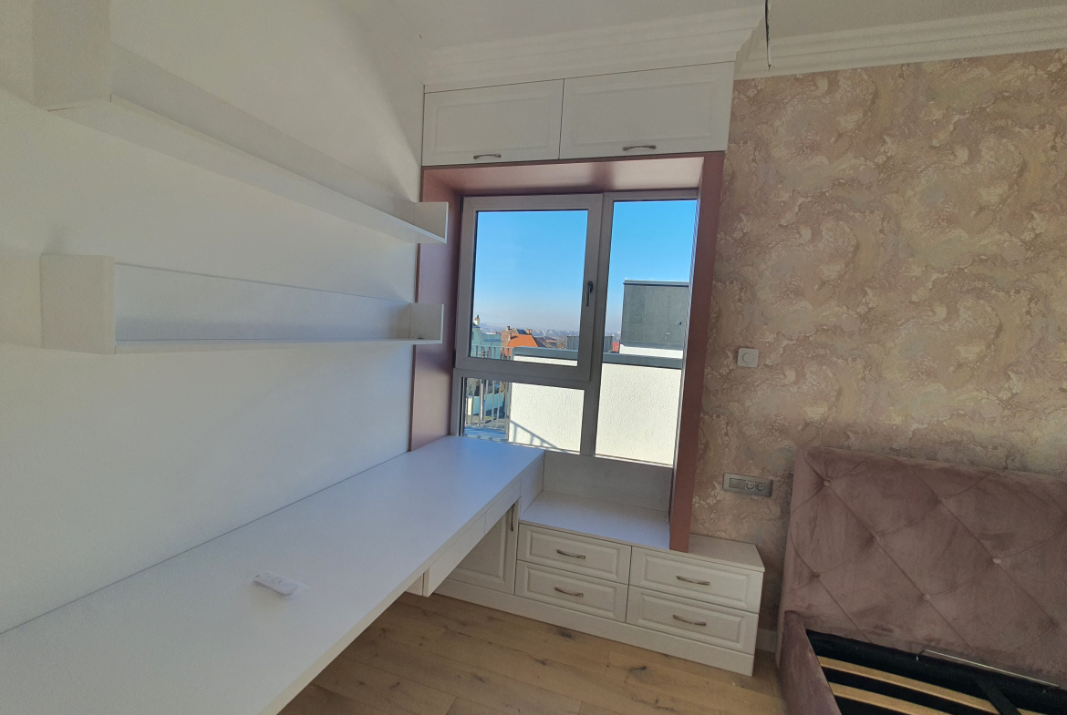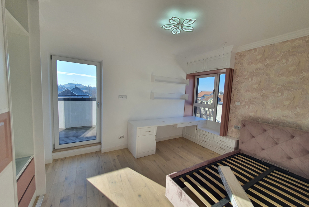 Terasa ampla de 150 mp iti da oportunitatea amenajarii unei gradini, sau a unui spatiu de relaxare in care sa regasesti linistea in fiecare zi,oferind  de la etajul superior o privelişte de poveste .