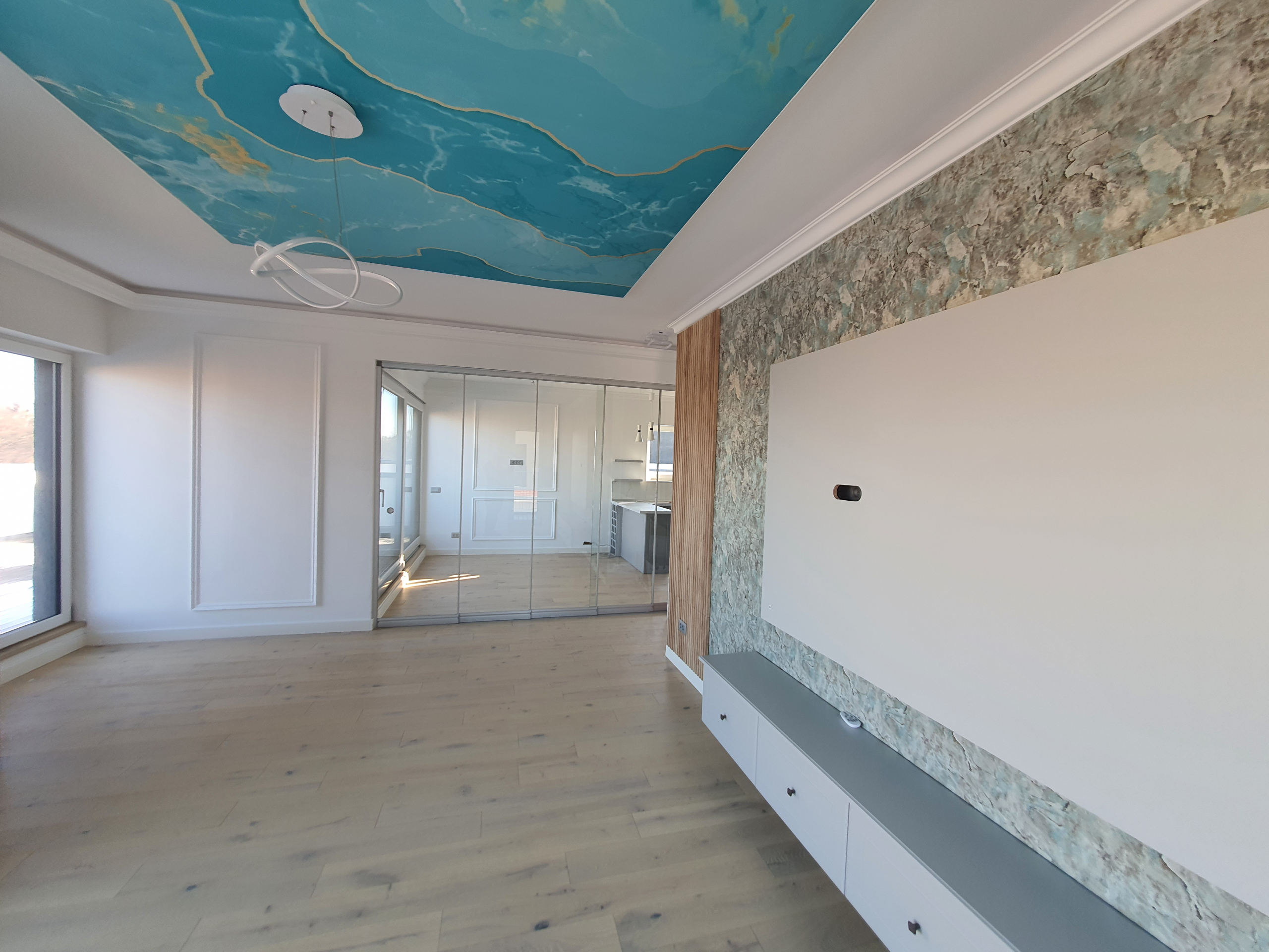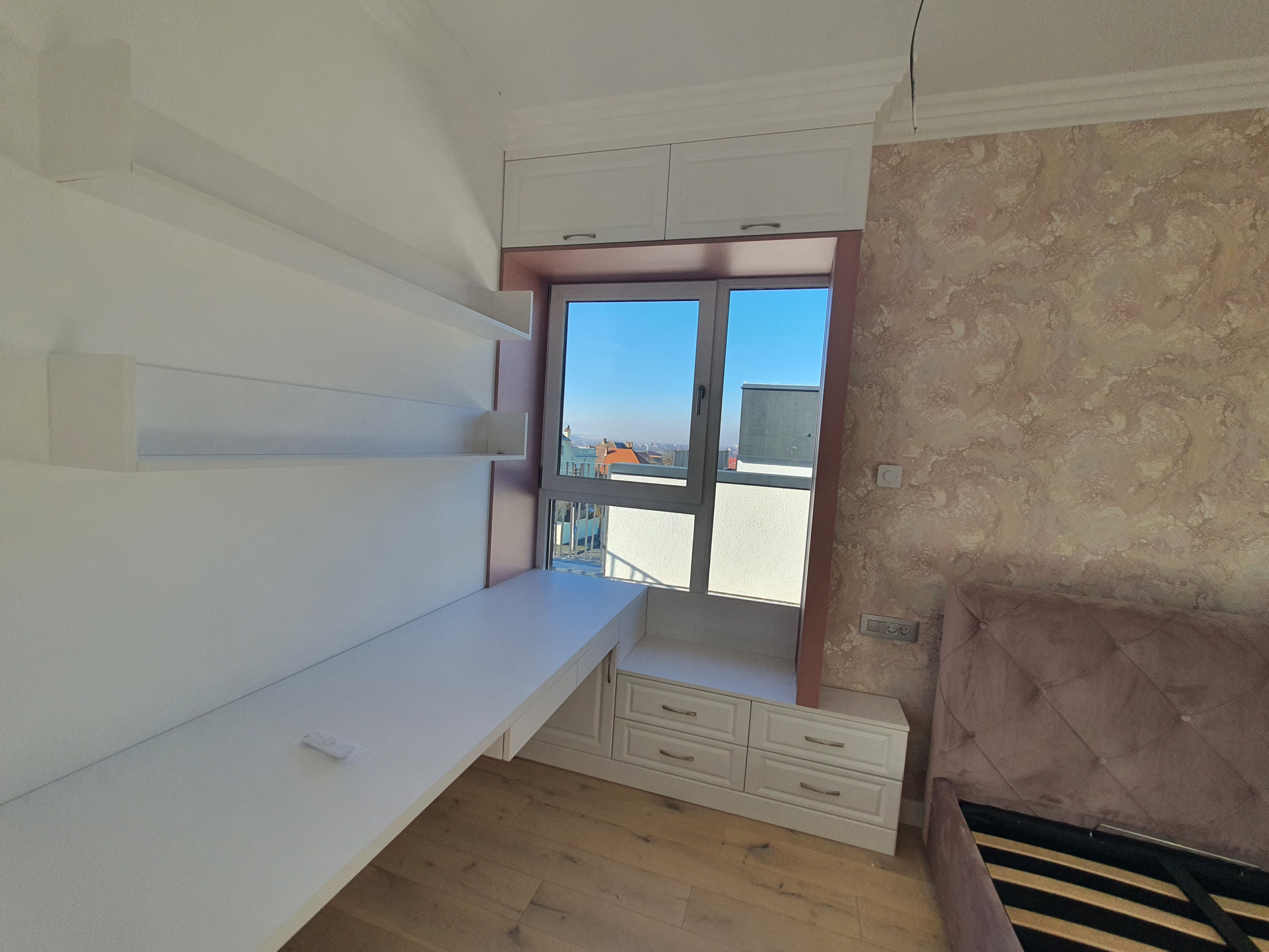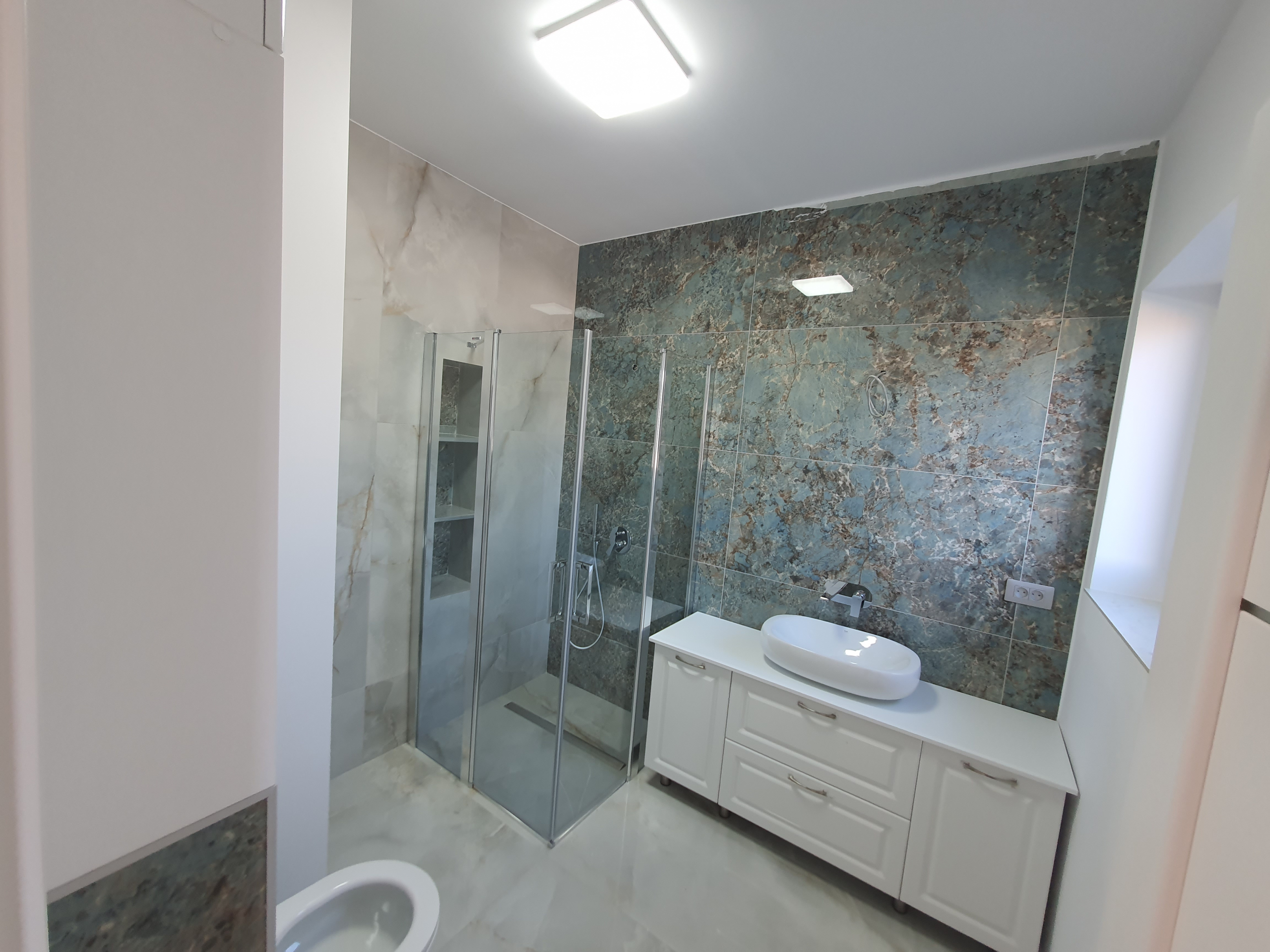 • Finisarea peretilor si a tavanelor s-a facut cu tencuiala mecanizata, tip var-ciment, glet de finisare si vopsitorie cu vopsea lavabila Vitex alba;