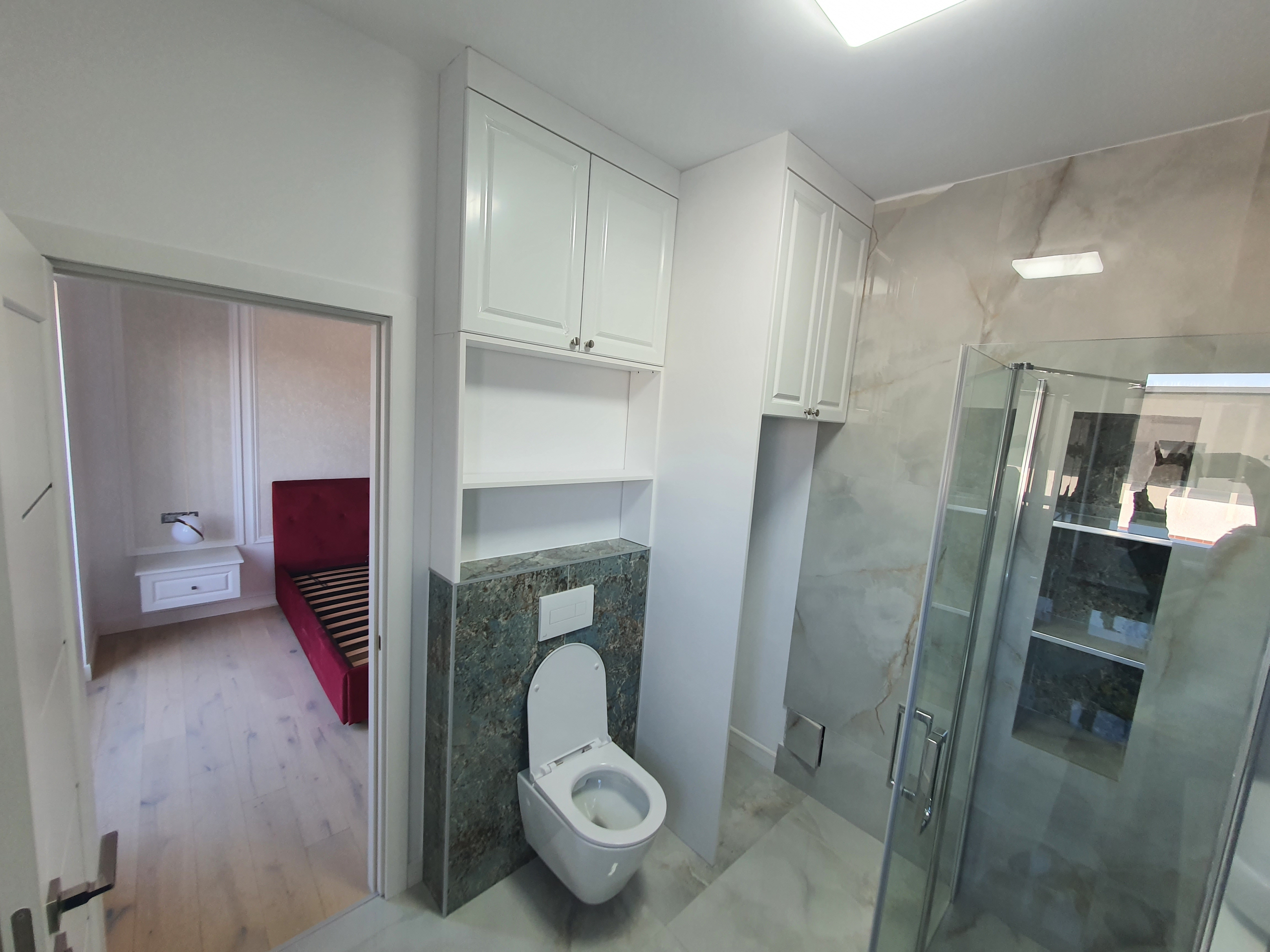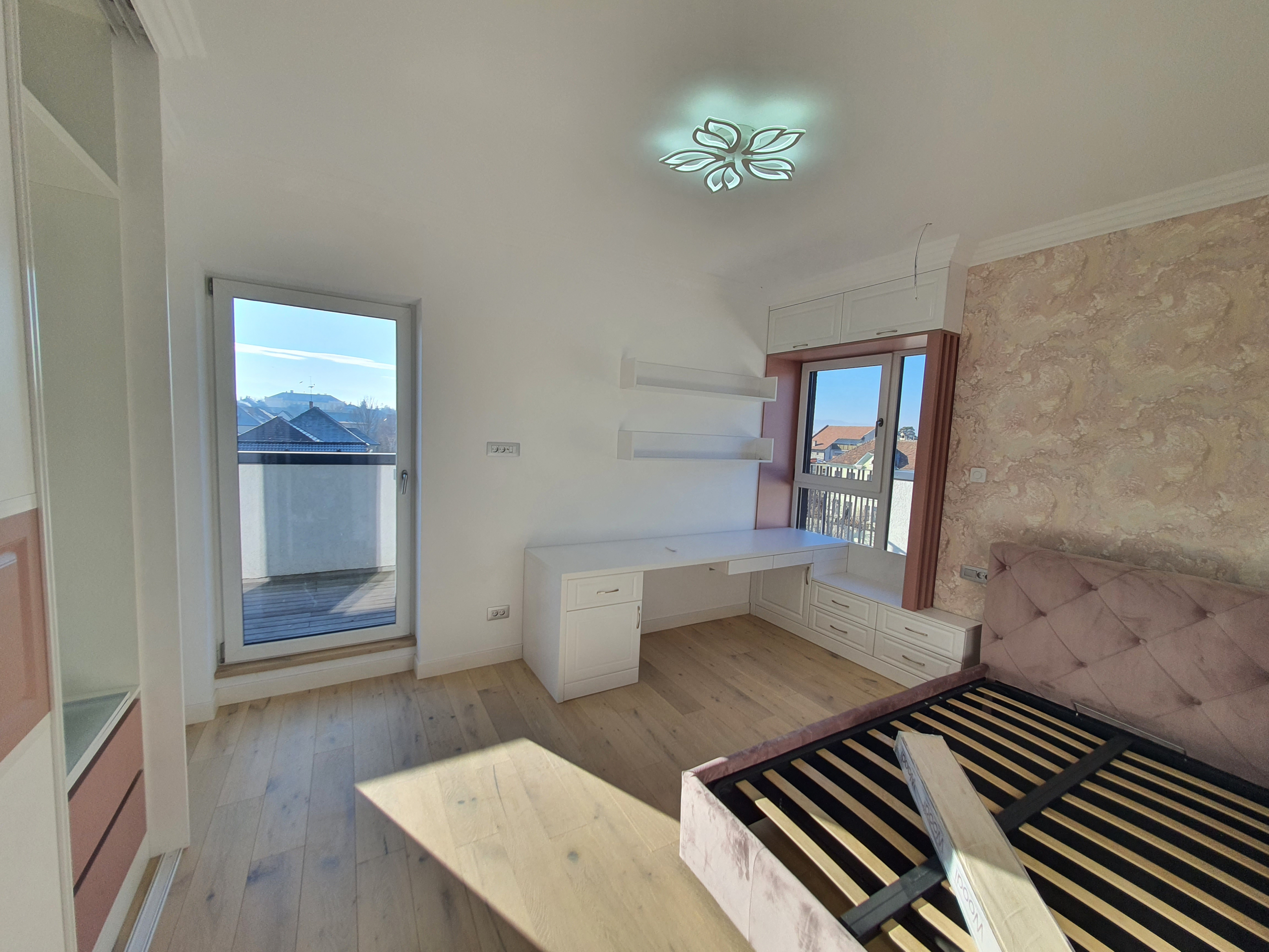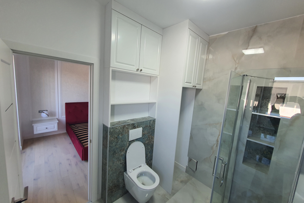 • Pardoselile finisate cu parchet laminat de trafic intens, tip EGGER Pro 12mm, conceput pentru încălzirea in pardoseală si cu placi ceramice pentru bai si grupuri sanitare;