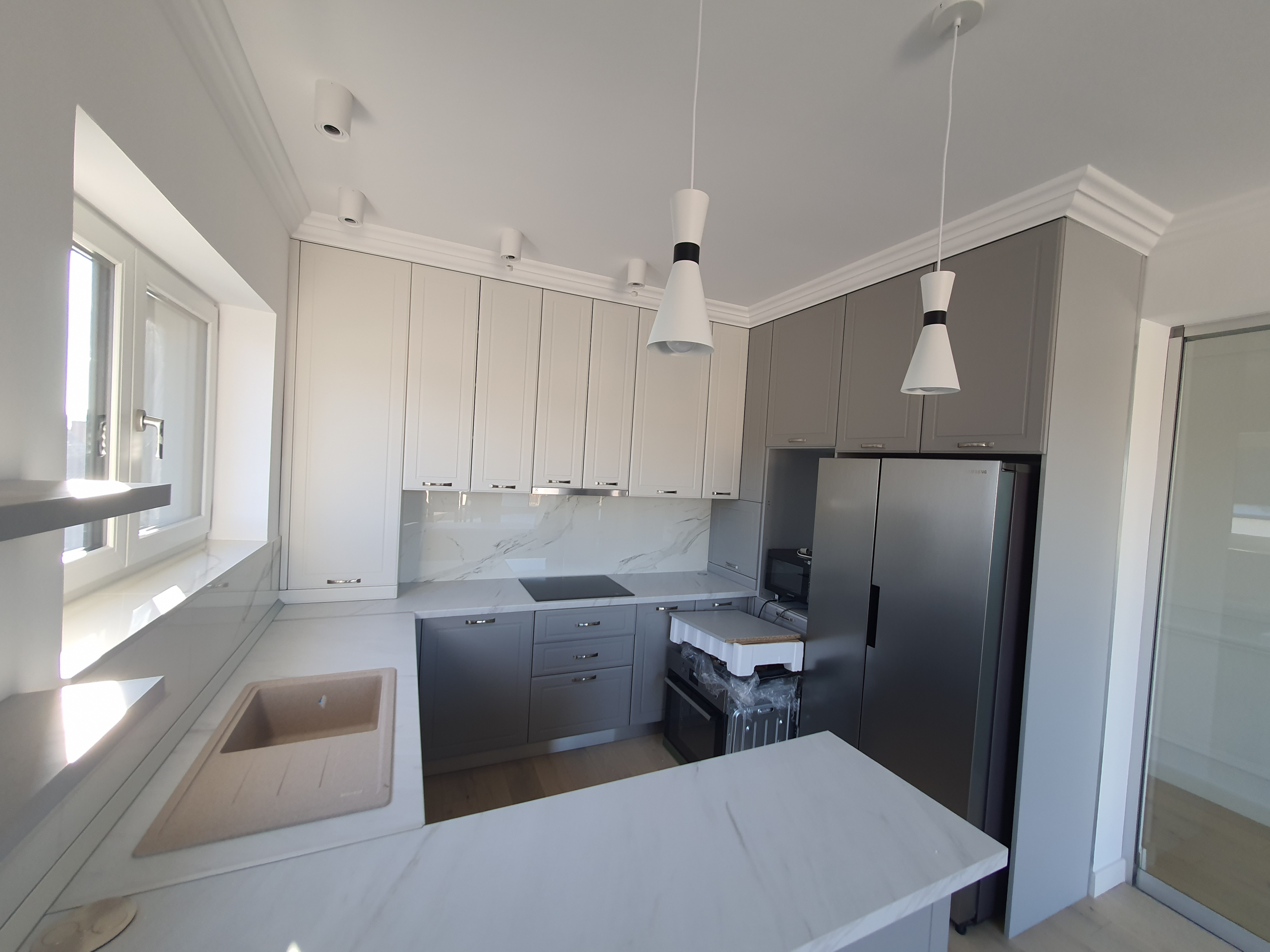 • Tamplaria exterioara este din PVC bicolor alb/antracit, profil cu 6 camere (Qfort 6 STARS), sticla cu 3 straturi 44LowE CLR 4+F4+LowE CLR 4 (Ar+We) (tripan), feronarie ROTO NT Titan mat;