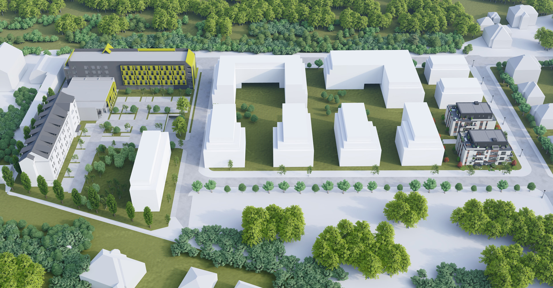• Zona verde  amenajata cu gazon si vegetatie;Alei cu pavaj.