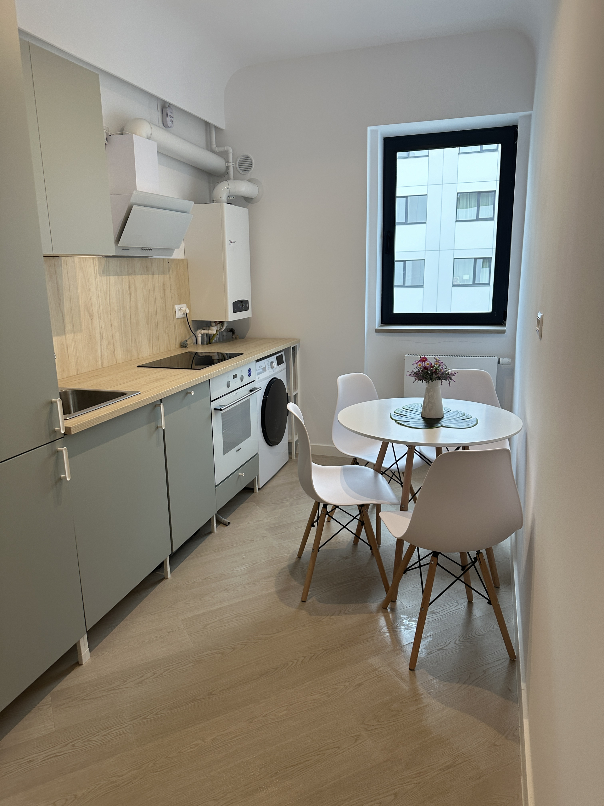 Avem placerea sa va oferim spre inchiriere un apartament de o camera, foarte frumos mobilat in ansamblul CORTINA NORTH. Cu o amplasare de exceptie in Nordul capitalei, in zona Aviatiei-Pipera, acest ansamblu este unul de referinţ în piaţa imobiliar , prin calitatea construcţiei şi a finisajelor, prin eleganţ şi modernism, oferind un access foarte bun catre principalele puncte de interes. Apartamentul este compus dintr-o camera spatiosa, cu o canapea extensibila, o bucatarie inchisa dotata cu aparatura electrocasnica necesara, grup sanitar cu finisaje deosebite si balcon spatios. Loc de parcare la subteran se poate inchiria separat la pretul de 50 euro.
