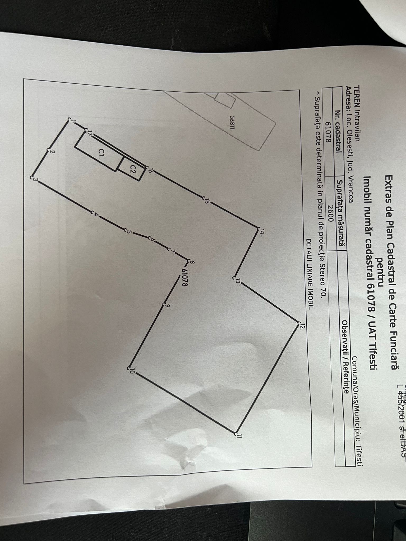 Teren de vanzare Judetul Vrancea, Comuna Tifesti 2600 mp