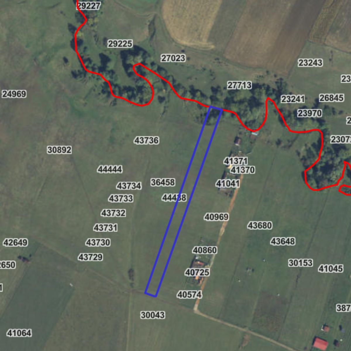 Eladó 4.700 m²-es kültelek a Bunica-tetőn A telek 16,41 méter széles és 287 méter hosszú, hátsó részét patak határolja. Ideális választás befektetésre vagy természetközeli kikapcsolódásra.