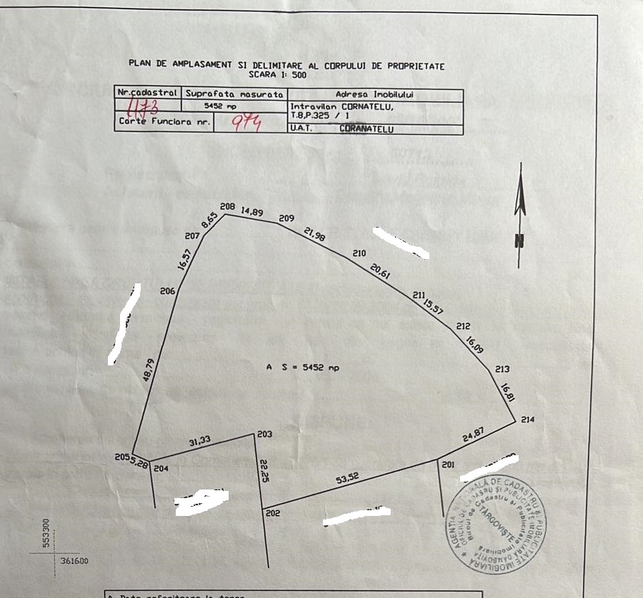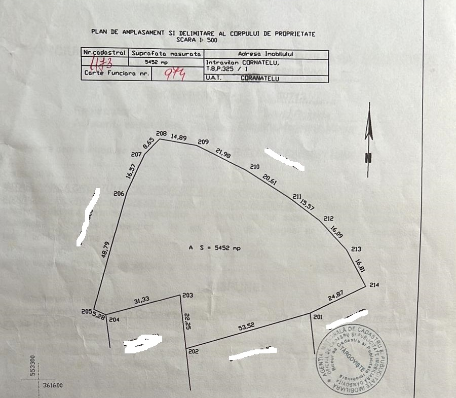 Oferim spre vânzare teren intravilan cu suprafață de 5452 mp.