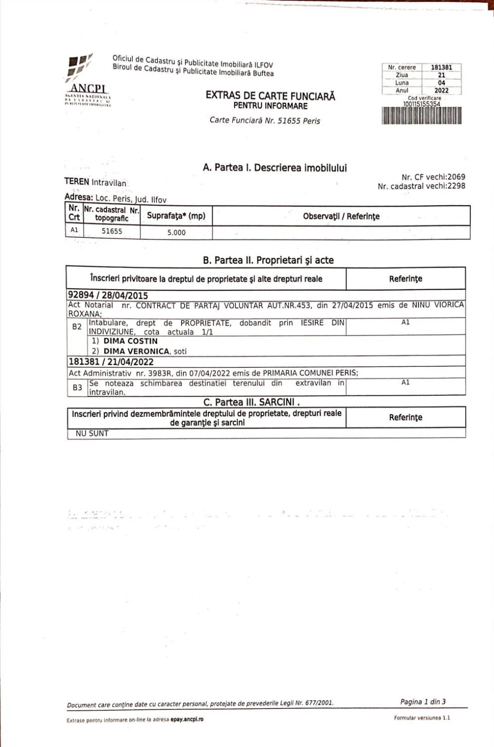 Teren intravilan Ilfov-Periș – 5000 mp