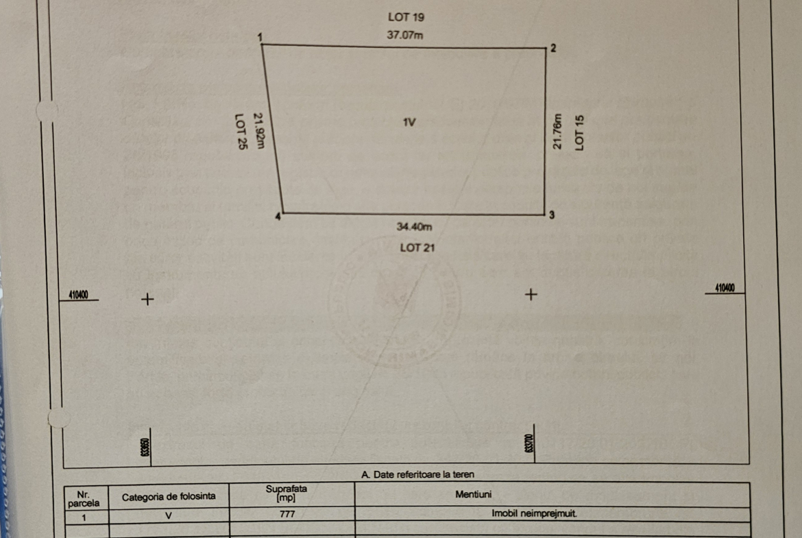 Vând teren intravilan în suprafața de 777 mp. în localitatea Zorești com. Vernești, la o distanță de 16 km de municipiul Buzău. În proximitatea terenului se află utilități precum: apă și electricitate. Terenul beneficiază de o deschidere de 21,92 ml și are toate actele necesare vânzării in regulă. Prețul de vânzare este de 22 euro mp negociabil. Tel.