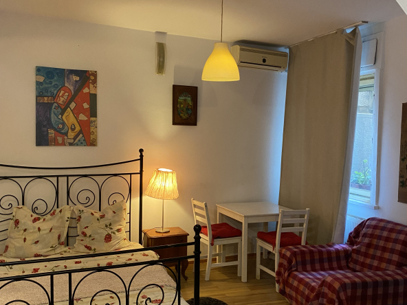 Aparamentul se vinde mobilat si utilat dupa cum se vede in poze. Este format din 2 camere (un dormitor si o camera de zi), o baie cu masina de spalat, vana si boiler electric, bucatarie mobilata nou, in bucatarie se gaseste o camara mica cu rafturi de jos pana sus pe 2 laturi, 2 holuri (un hol la intrare cu suport metalic pentru 2 biciclete pentru economie de spatiu, un hol intre bucatarie si dormitor unde se mai poate amenaja o camara sau un frigider cu congelator inalt), balcon inchis cu termopan si rolete pentru toate geamurile. Are centrala pe gaz proprie si geamuri termopan. Usa de la intrare este metalica cu inchidere in 6 puncte.