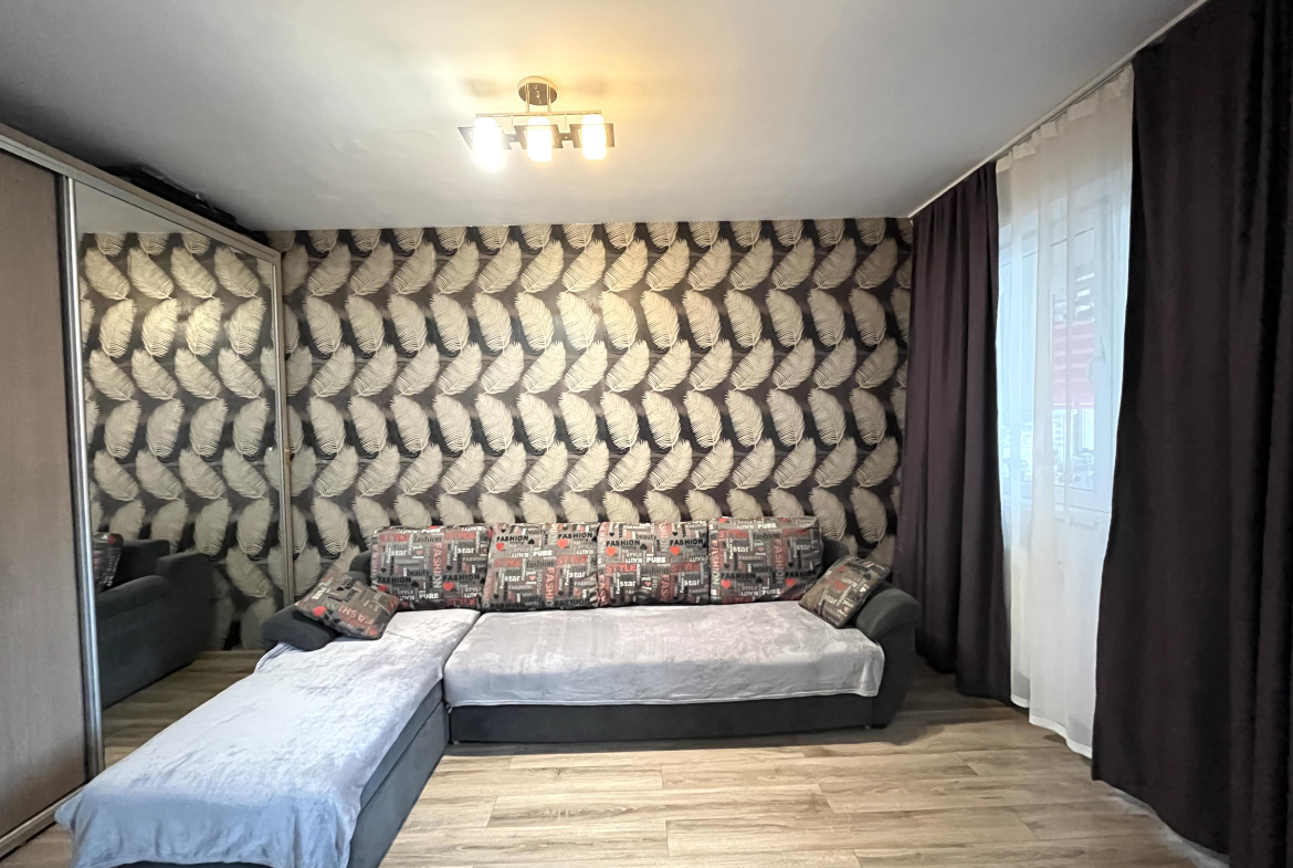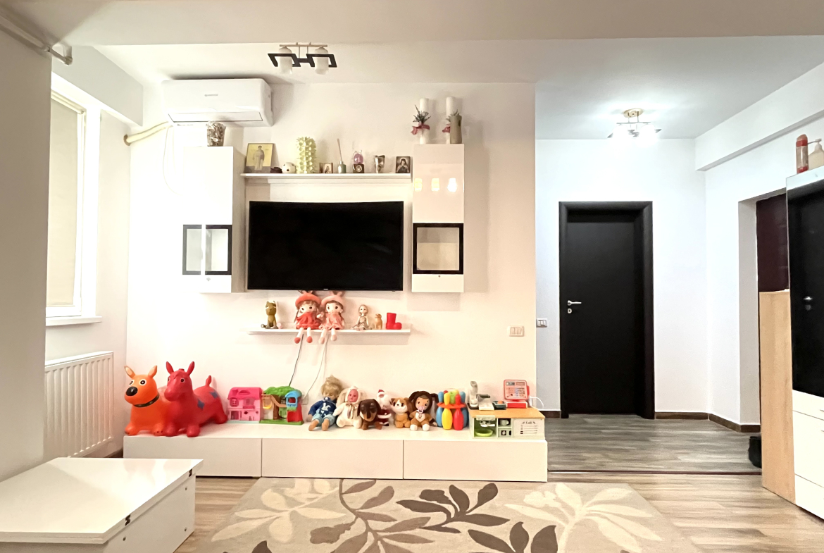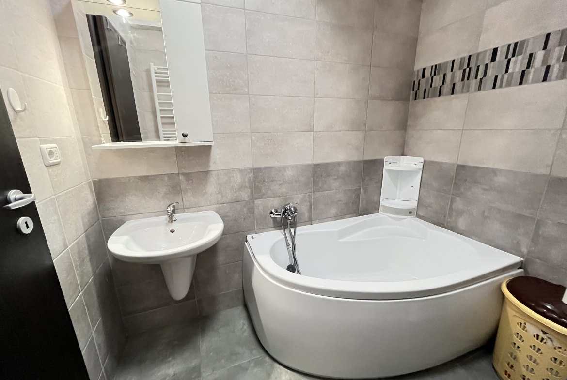 Apartamentul se vinde mobilat si utilat, fiind dotat cu televizor, frigider,masina de spălat, plită și cuptor electric, cuptor cu microunde, aparat de AC, centrala proprie, iar balconul este complet inchis cu tamplarie termopan și rolete zi/noapte.