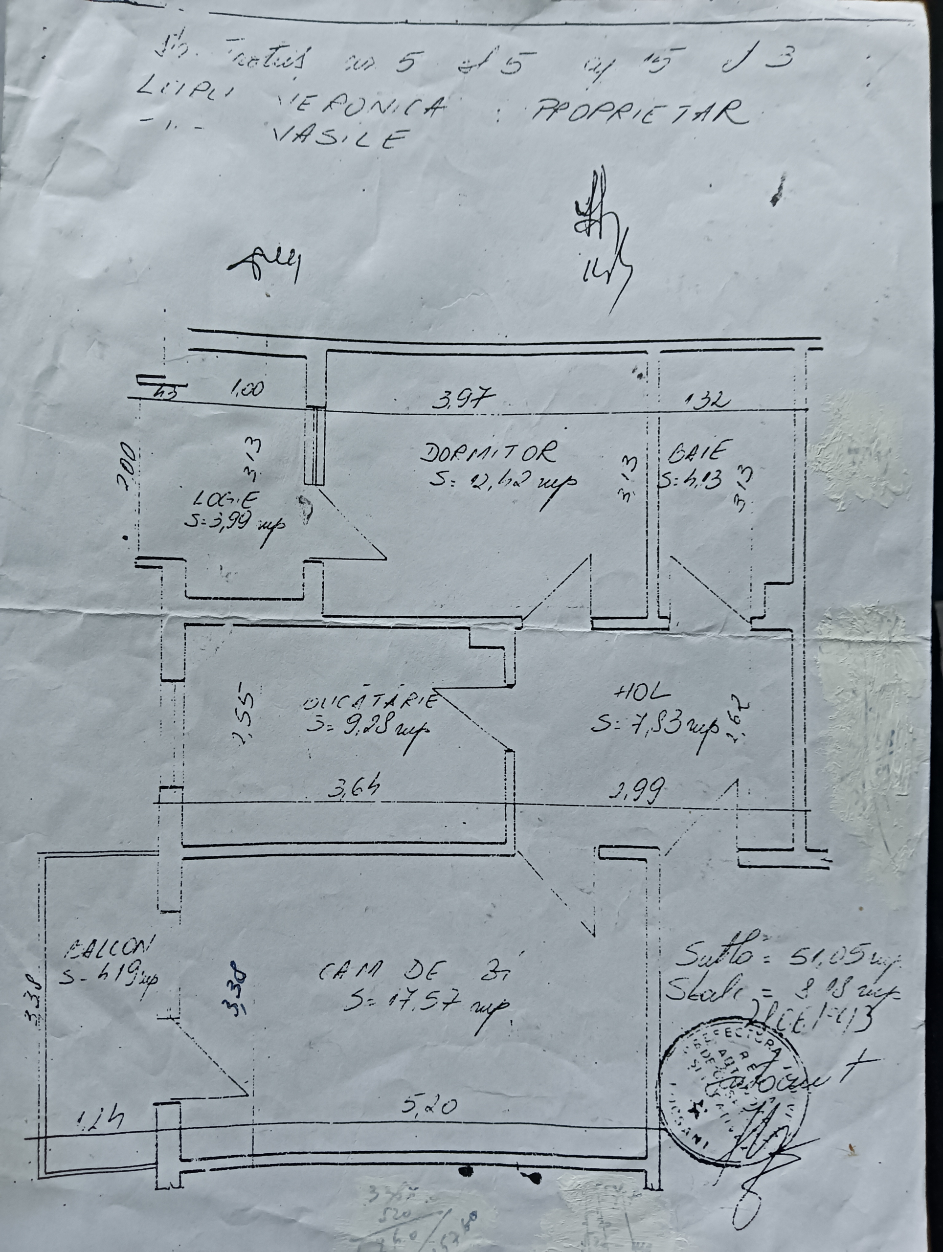 Apartament de 2 camere, decomandat, parțial mobilat, etaj 3/3, bloc izolat termic, centrala termica, ușă metal, mansardă.