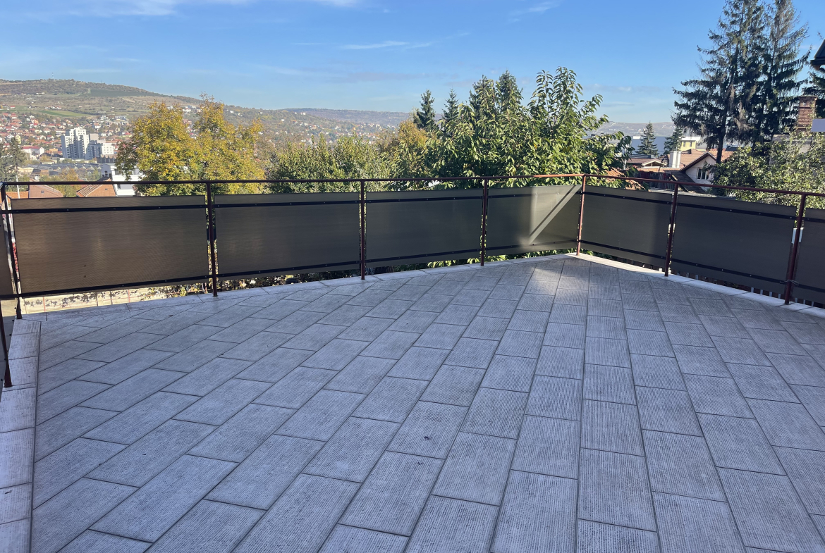 Vând apartament în vilă cu acces individual în curte compus din trei camere complet decomandate , două bai, bucatarie, spațiu depozitare . Apartamentul mai deține și o terasă de 40 mp. Apartamentul este la parter înalt