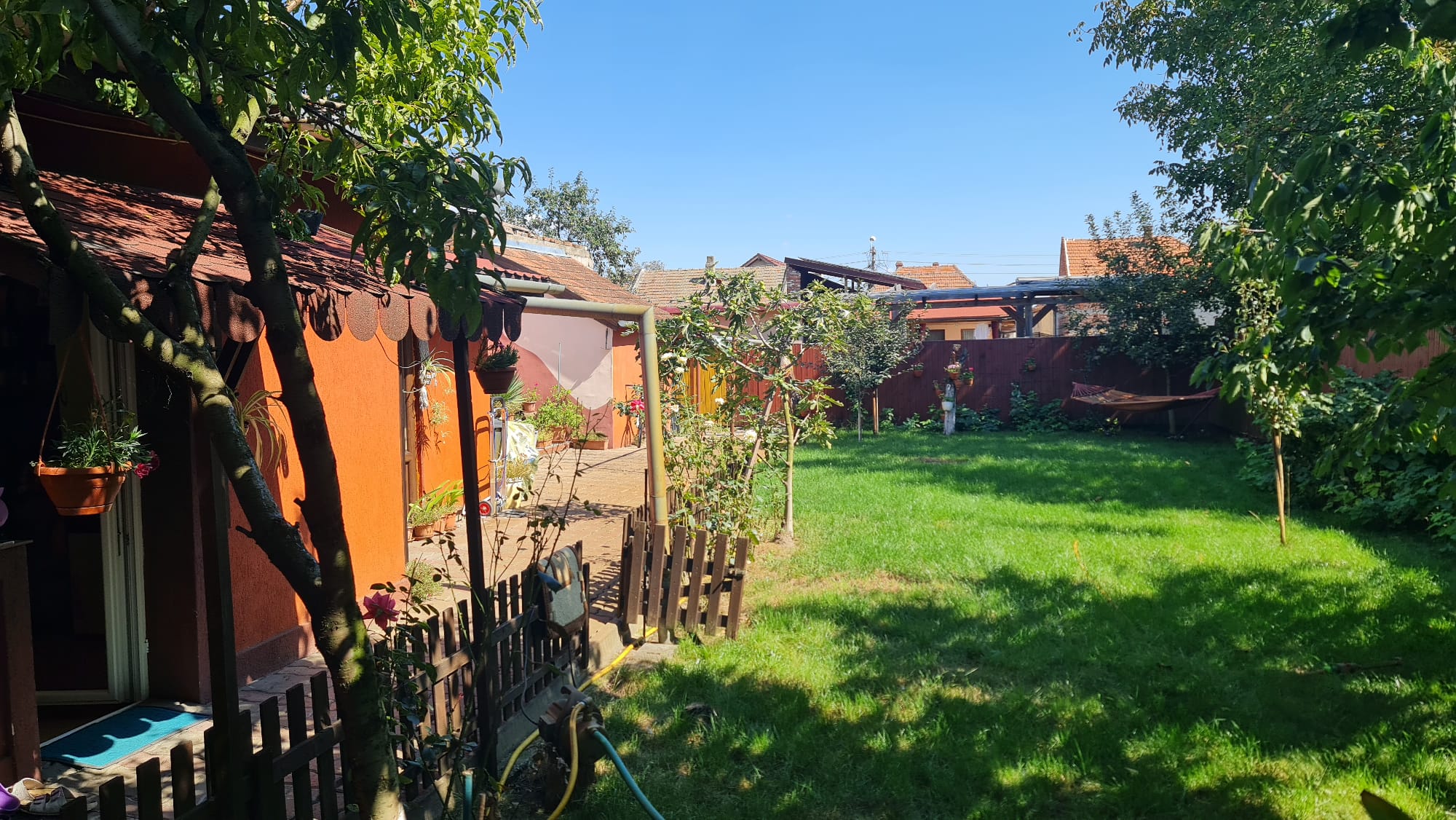 Casa 3 dormitoare 2 bai,living,dining,bunatarie,suprafata utila 120 mp,teren 580 mp,front stradal 12 m,complet mobilata si utilata,curte cu iarba si pomi fructiferi,terasa acoperita.
