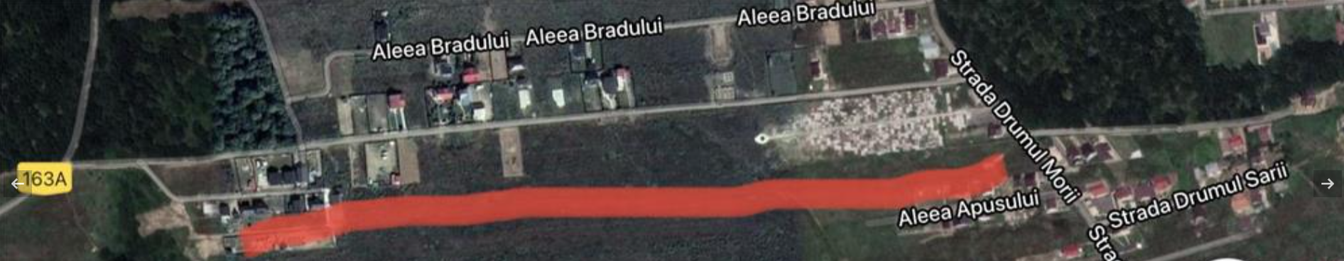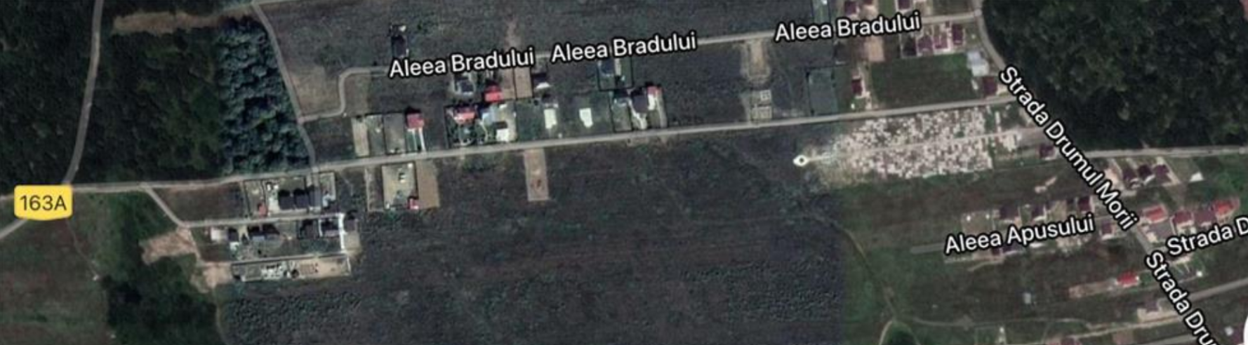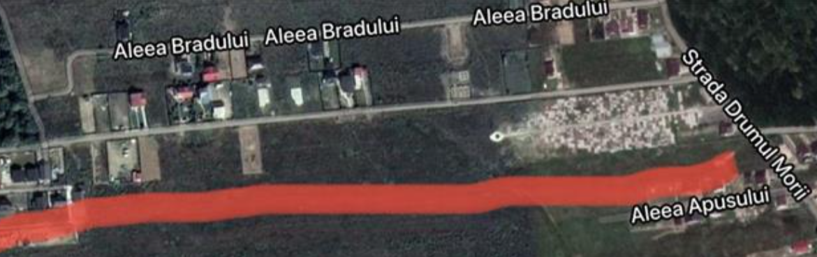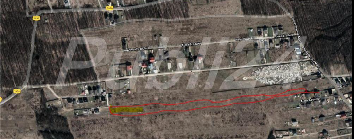 Parcela cu loturi este perpendiculara pe Drumul Morii si se afla intre Aleea Bradului si Aleea Apusului. Pu