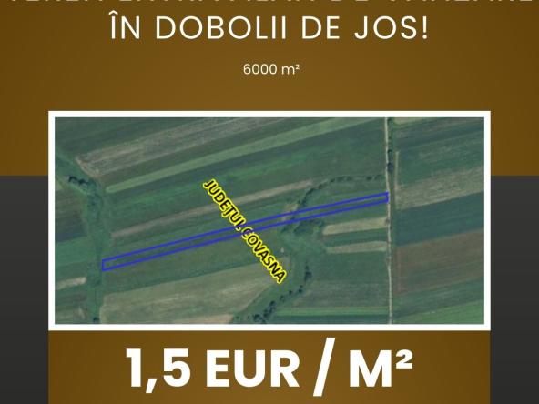 Vând 6600 mp de teren cu deschidere la stradă 40 m. Terenul poate fi folosit pentru constructii sau agricultură.