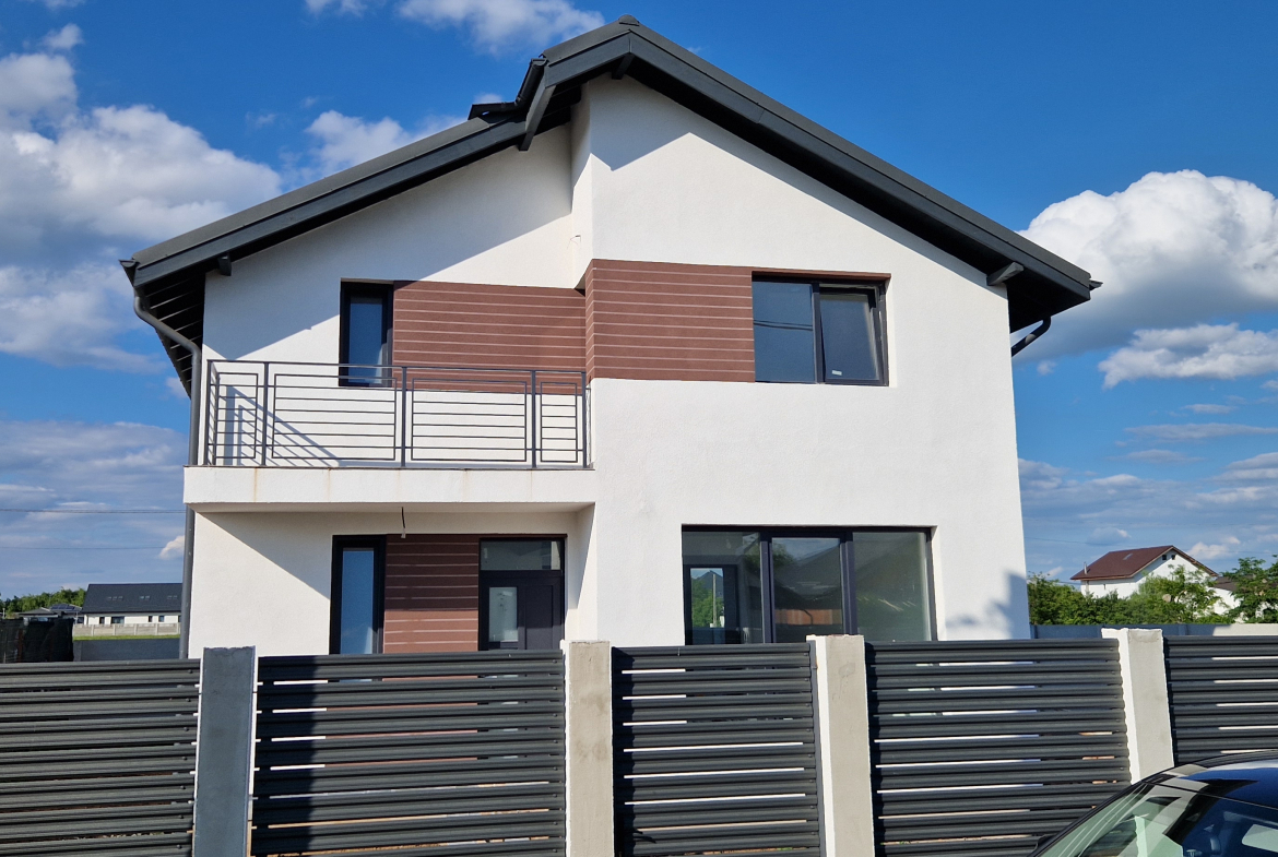 vând vila individuala Berceni,an construcție 2024 ,4 camere,2 bai,bucătărie mare 13 mp ,balcon , finisaje lux ,terasa mare parter 12 mp, living 27 mp, 3 dormitoare 14- 15 mp ,ferestre tripan Rehau antiefractie gri antracit , incalzire in pardoseala izolatie etaj cu spuma poliuretanica de 15 cm ,,usi Pinum,electrice Gewiss, centrala proprie pe gaz ,toate utilitățile, gaz ,curent ,apa ,300 mp teren, proprietar , comision 0%, accept credit .
