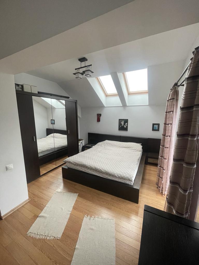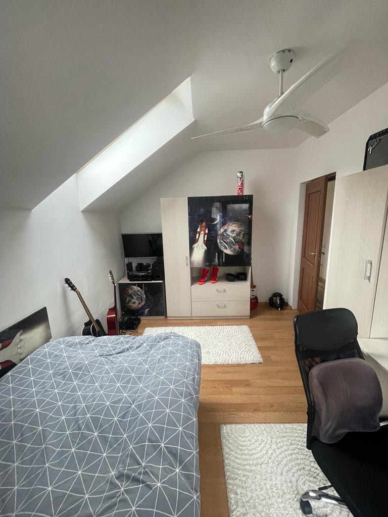 Imobilul este situat intr-o curte de 440 mp, suprafata construita la sol fiind de 87 mp iar suprafata utila este de 120 mp. Este construita din caramida porotherm, izolata termic Caparol ( Dalmatina neagra), acoperis cu tigla Bramac, iar podul este podit si izolat. Ferestrele si usa de la intrare sunt de termopan cu 3 randuri de structuri. Incalzirea imobilului se face prin centrala termica pe gaz 2022( 5 ani garantie), avem de asemenea incalzire in pardosea pe ambele nivele, si in livingul spatios de la parter regasim un semineu. Mansarda este iluminata prin ferestre Velux si fiecare camera are acces la balcon.